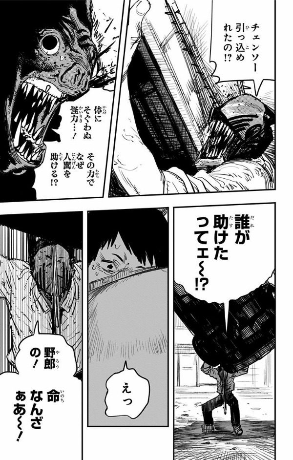 「胸を揉む!!」その圧倒的欲望を原動力に、コウモリの悪魔と激闘を繰り広げるデンジ!! 戦いの果てに掴むのは、胸!? それとも…!? そして、マキマが語る人類の敵「銃の悪魔」とは!? 公安の犬・デンジの戦いは新たな局面へ!!