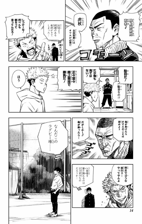 類稀な身体能力を持つ高校生・虎杖悠仁は、病床に伏せる祖父の見舞いを日課にしていた。だがある日学校に眠る「呪物」の封印が解かれ、化物が現れてしまう。取り残された先輩を救う為、校舎へ乗り込む虎杖だが!?