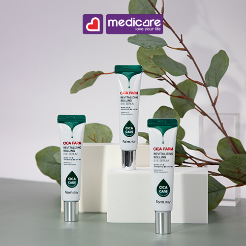 Tinh Chất Dưỡng Mắt FARMSTAY Cica Farm Tái Tạo Da, Giảm Quầng Thâm 25ml   THÔNG TIN SẢN PHẨM: • Đơn vị tính và Quy cách đóng gói: Một Tuýp – 25ml. • Nước xuất xứ: sản xuất tại Hàn Quốc.   CÔNG DỤNG: • Tinh chất dưỡng mắt chứa chiết xuất Centella Asiatica (rau má) giúp làm dịu, cấp nước và làm mịn làn da mệt mỏi và thô ráp. • Tăng cường độ đàn hồi cho da. • Niacinamide và Adenosine giúp làm sáng da và cải thiện các nếp nhăn.   HƯỚNG DẪN SỬ DỤNG: • Lấy một lượng vừa đủ, dùng đầu lăn massage nhẹ quanh viền mắt. • Vỗ nhẹ để sản phẩm thấm hoàn toàn.   LƯU Ý: • Ngừng sử dụng và hỏi ý kiến bác sĩ nếu xuất hiện các triệu chứng như đốm đỏ, ngứa hoặc sưng tấy. • Không sử dụng trên vết thương hở hoặc vùng da bị trầy xước. • Để xa tầm tay trẻ em.     Hướng dẫn bảo quản: Bảo quản nơi khô ráo, nhiệt độ dưới 35°C, tránh tiếp xúc trực tiếp với ánh nắng mặt trời.   • Chỉ sử dụng bên ngoài. • Chúng tôi luôn cố gắng đảm bảo tất cả thông tin về công dụng và hướng dẫn sử dụng của sản phẩm luôn được cập nhật đầy đủ và chính xác trên trang web. • Đọc kỹ thông tin sản phẩm trên bao bì hoặc tờ rơi hướng dẫn đính kèm trước khi dùng và chỉ được sử dụng theo như hướng dẫn.