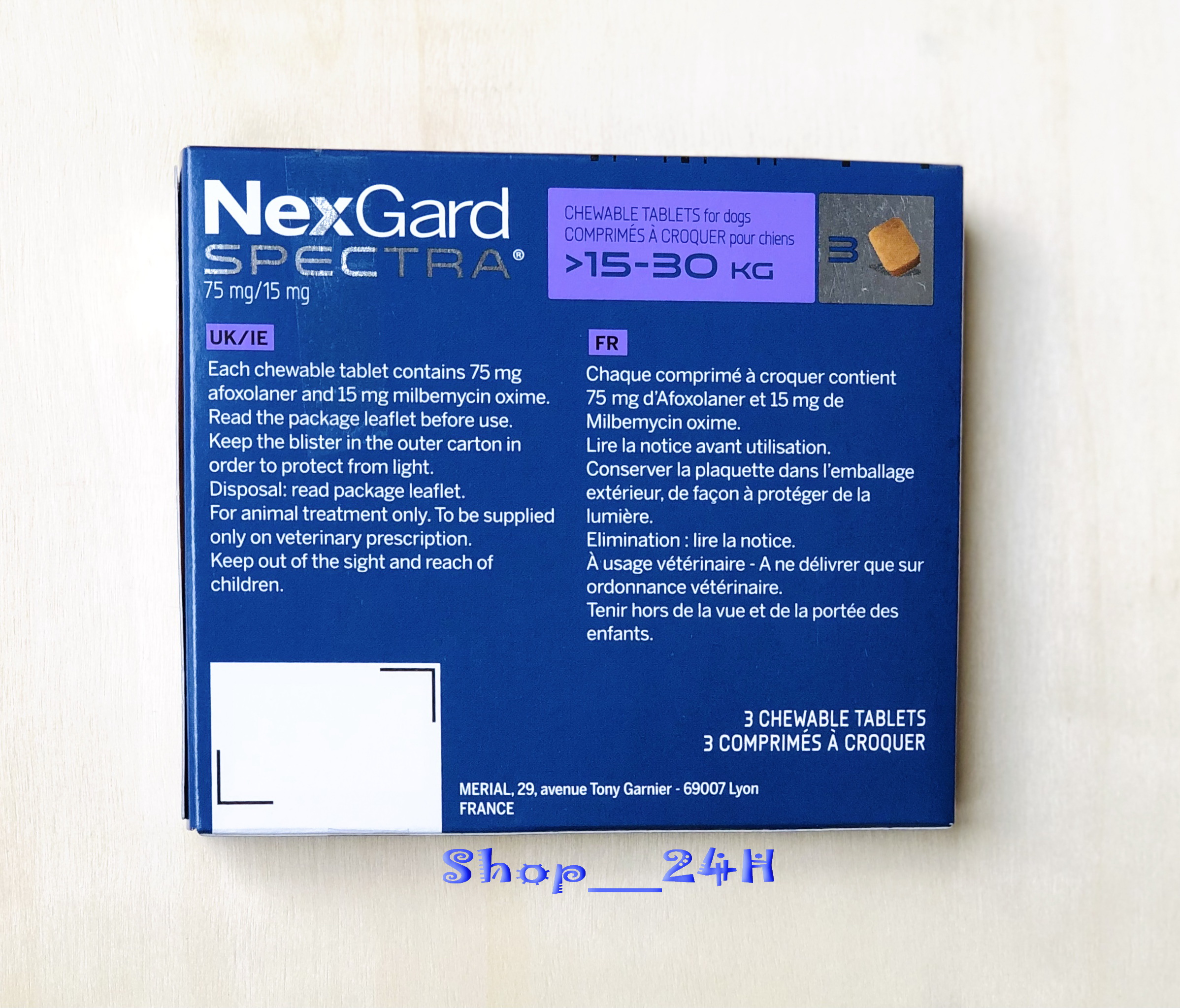 ✨1 hộp NexGard Spectra trị giun, ghẻ, viêm da, ve rận (chó 15 - 30kg; hộp 3 viên)