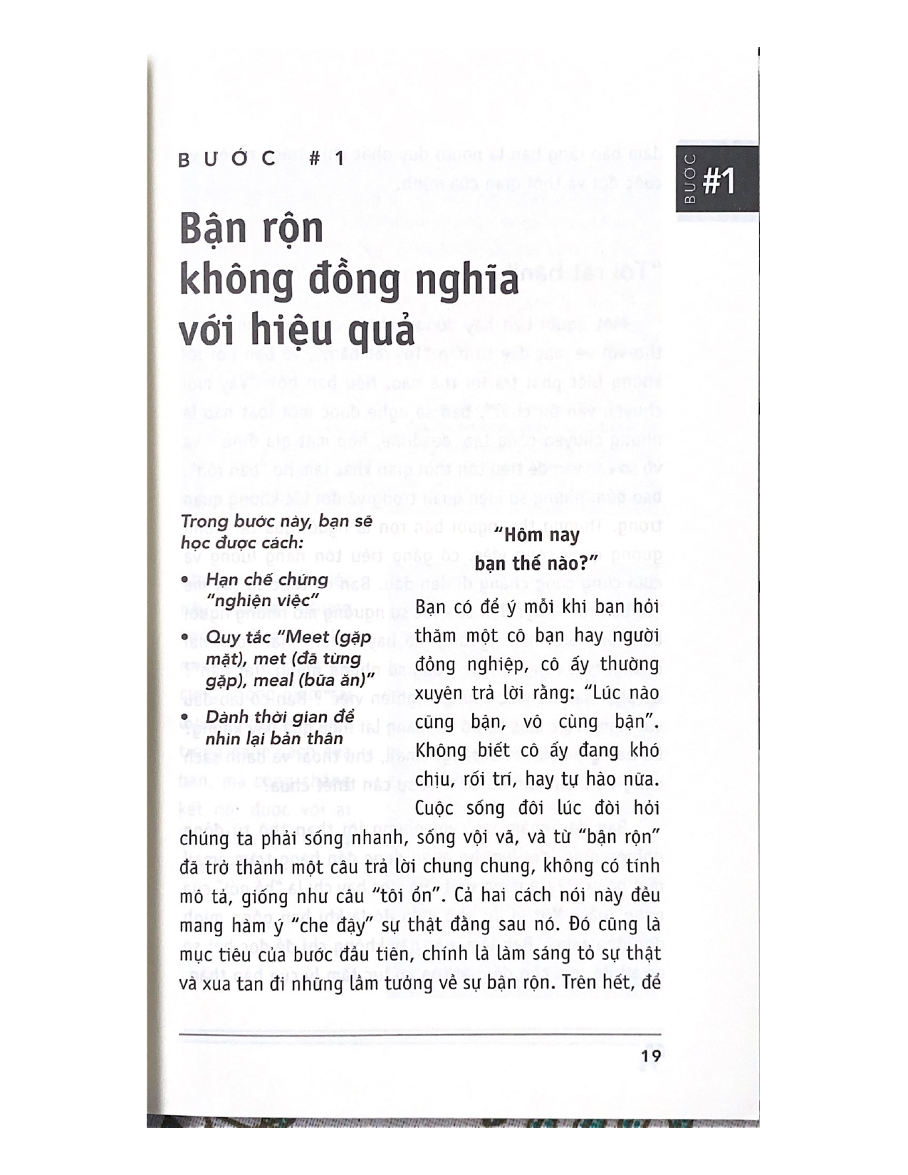 10 Bước Thực Hành - Quản Lý Thời Gian-Vanlangbooks I.Giới thiệu sách Chúng ta sử dụng kĩ năng để tiết kiệm từng phút. Chúng ta sử dụng chiến lược để tiết kiệm từng giây.Chúng ta sử dụng tư duy để tiết kiệm bộ nhớ. Nếu bạn luôn bị áp lực và không thể rời mắt khỏi chiếc đồng hồ đang tích tắc, toát mồ hôi hột vì thời gian cứ trôi đi còn mình vẫn chưa làm được gì cả, thì đây chính là quyển sách dành cho bạn.10 Bước Thực Hành Quản Lý Thời Giansẽ cung cấp cho bạn phương thức quản lý thời gian tối ưu nhất từ những chuyên gia và doanh nhân thành công từ khắp nơi trên thế giới. Thông qua những phương pháp khoa học và mẹo quản lý thời gian hiệu quả, cuốn sách này sẽ giúp bạn: