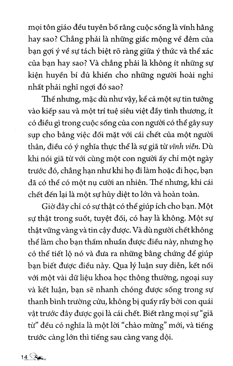 Đừng Khóc Không Sao Mà “ĐỪNG KHÓC, KHÔNG SAO MÀ!” Một lời an ủi động viên, một câu nói khích lệ tinh thần khi bạn đang mệt nhoài với những ngày tháng đầy rẫy đau thương, có một người đến bên cạnh vỗ vai và dịu dàng an ủi “Chúng ta rồi sẽ ổn thôi. đừng khóc không sao mà!”. Chỉ một câu ngắn gọn mà khiến bạn ấm lòng, có thêm niềm tin tìm cách giữ thăng bằng trong những ngày tháng chênh vênh. Nhưng cũng có lúc, lời an ủi đó tựa một chiếc dây xích tạo áp lực khủng khiếp, bạn phải gồng mình chống lại sự yếu đuối chỉ chực chờ bung trào, phải cố gắng tỏ ra là "tôi vẫn ổn" để không làm thất vọng mọi người xung quanh. Và kết quả là, bạn đã cố gắng đến độ kiệt sức và buông xuôi, tự giải thoát mình. Nhưng sau những điều tồi tệ thì vẫn đúng là... MỌI CHUYỆN RỒI CŨNG SẼ ỔN thôi… Đó cũng chính là thông điệp trong cuốn “Đừng khóc, không sao mà” muốn nhắn gửi đến tất cả chúng ta. Sau những chuyện tồi tệ, thì cuộc sống sẽ trở về trạng thái cân bằng. Đôi lúc, một vài thứ xảy ra giống như sóng để chúng ta biết dừng lại nghỉ ngơi, cho mình yếu đuối một chút, cần dựa dẫm một chút… Để khi nhìn lại những thứ tưởng có thể nhấn chìm mình hoá ra lại “nhẹ nhàng” đến thế. Dù có nhiều cơn ác mộng thế nào, thời gian vẫn trôi, mặt trời vẫn mọc, gió vẫn thổi và ngày cứ thế mà hết sáng lại đêm. Nhưng rõ ràng, để đi đến được cảm giác nhẹ nhàng đó là một chặng đường dài đầy khó khăn, và thứ mỗi chúng ta cần, không gì khác ngoài một trái tim tràn đầy niềm tin rằng “Phía bên kia, là chân trời bạn mong, thanh thản, an yên, không có đau lòng, không có tiêu cực…” Khép lại những trang trong cuốn sách này mong bạn hãy bỏ lại cái tôi đầy thương tích cùng vết thương lòng nặng trĩu để kiếm tìm lại bình yên, vun vén lại thứ hạnh phúc bạn đánh mất!