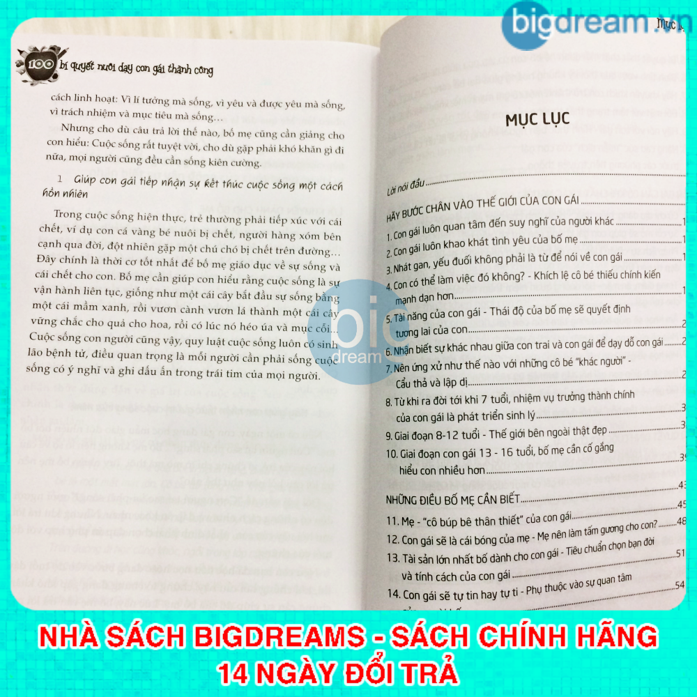 100 bí quyết nuôi dạy con gái thành công dựa vào đặc điểm giới tính và tâm lý của con gái để đề cập đến rất nhiều phương diện như cuộc sống, học tập, tính cách, tâm trạng... của con gái