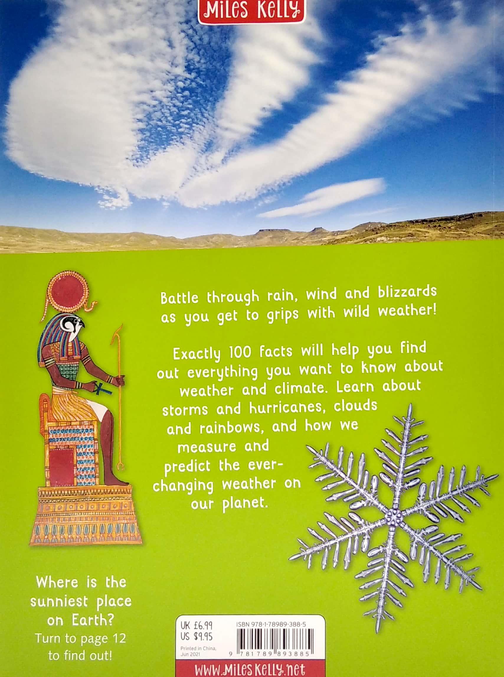 Battle through rain, wind and blizzards as you get to grips with wild weather! Exactly 100 facts will help you find out everything you want to know about weather and climate. Learn about storms and hurricanes, clouds and rainbows, and how we measure and predict the everchanging weather on our planet.