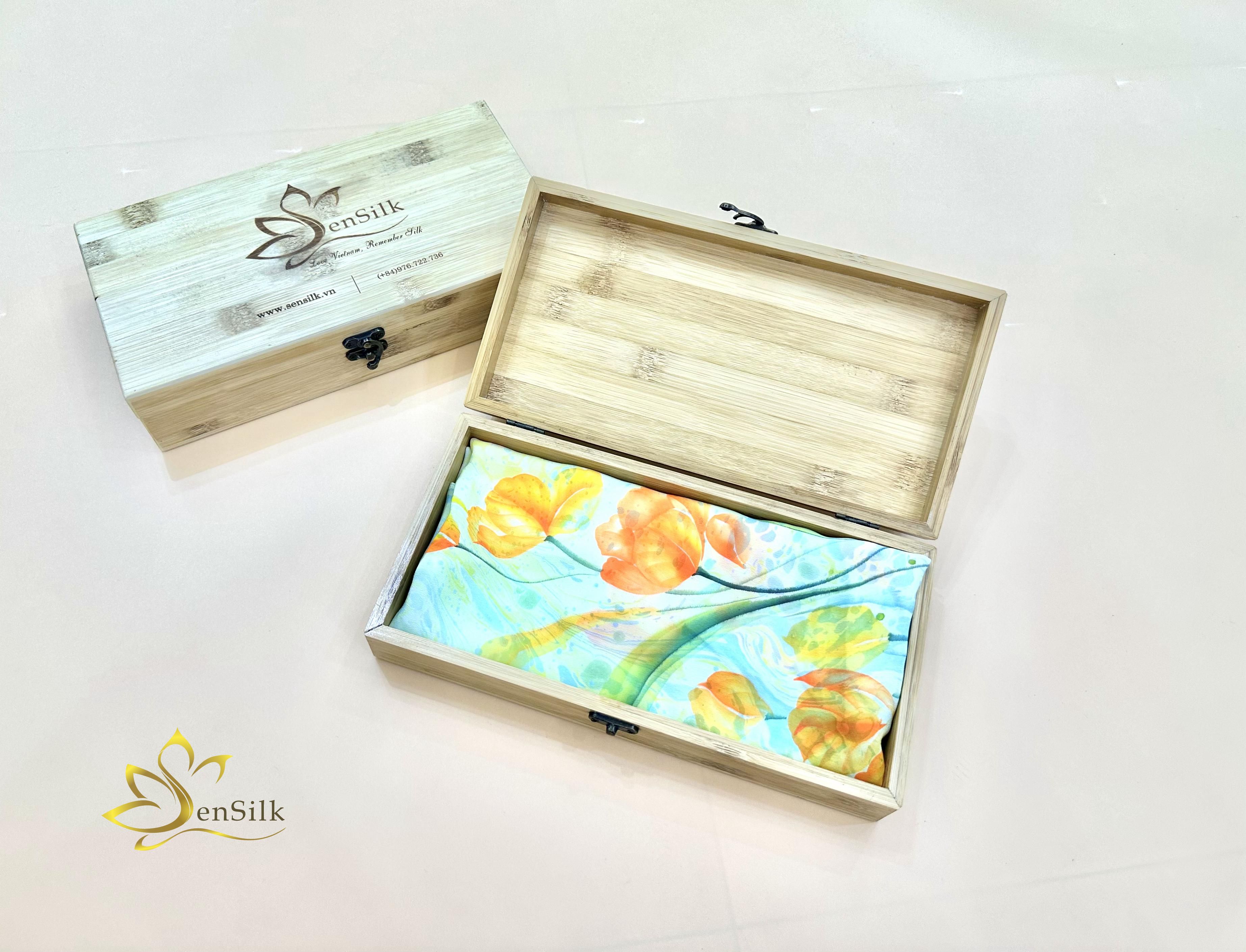 Nét chấm phá của Bộ sản phẩm Lụa Thủy Ấn còn nằm ở chiếc hộp đựng làm từ Tre. Hộp Tre SenSilk được thiết kế độc đáo, chau chuốt về ý tưởng tạo nên một sản phẩm nghệ thuật làng nghề Á Đông mộc mạc, tinh xảo và thân thiện với môi trường. Riêng chiếc hộp Tre Việt thôi đã là một món quà vô cùng độc đáo cho các Nàng Thơ.