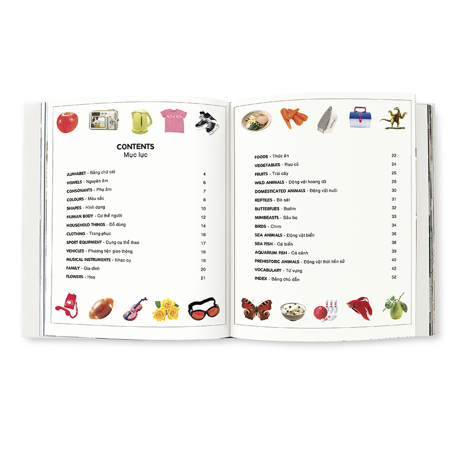 Đây là cuốn song ngữ Anh - Việt vô cùng bổ ích dành cho các bé từ 2 đến 7 tuổi bắt đầu tập nói tiếng Anh. Bé sẽ được phát triển vốn từ tiếng Anh thông qua các chủ đề gần gũi như màu sắc, hình dạng, cơ thể hay các chủ đề mang tính khám phá như động vật biển, động vật hoang dã và khủng long… Không những thế, chọn lựa phương pháp chuyển tải thú vị, cuốn sách mở ra cho các em một thế giới hình ảnh sinh động và đầy màu sắc, giúp bé tiếp thu kiến thức và ghi nhớ dễ dàng hơn.