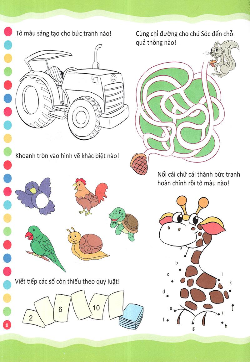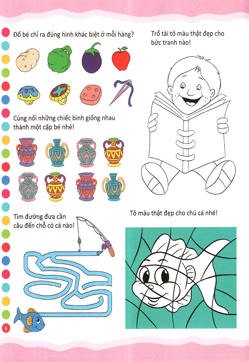 Quyển sách, có tô màu, có tính toán, có vẽ tranh, có trò chơi tìm đồ vật cất giấu, nối hình cho những sự vật hiện tượng có liêu quan, có tư duy logic… Bé từ đó được làm các dạng trò chơi khác nhau để phát triển về tư duy. Thông qua các trò chơi tư duy này, bạn có thể giúp bé rèn luyện trí não một cách tốt nhất, giúp bé biết hệ thống, luôn tự tin và biết cách xử lý các tình huống một cách nhạy bén hơn.