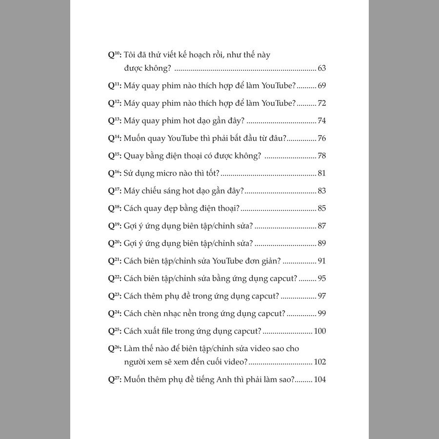 - Mặc dù 101 điều nên biết để trở thành Youtuber triệu views là cuốn sách dành cho người mới bắt đầu, nhưng sẽ có lúc bạn phải thốt lên “tại sao nội dung lại khó đến vậy?”. Tuy nhiên, có một sự thật rằng bạn cần hiểu rõ đến mức độ này thì mới có thể điều hành kênh YouTube tốt và hiệu quả được. Từ những kiến thức cơ bản đến phần lập kế hoạch và chủ yếu là các phương pháp, nó sẽ giúp bạn tự tin hơn và có một kiến thức nền tảng vững chắc để bắt đầu xây dựng cho mình một kênh Youtube triệu views. Mục lục ... Tóm tắt nội dung