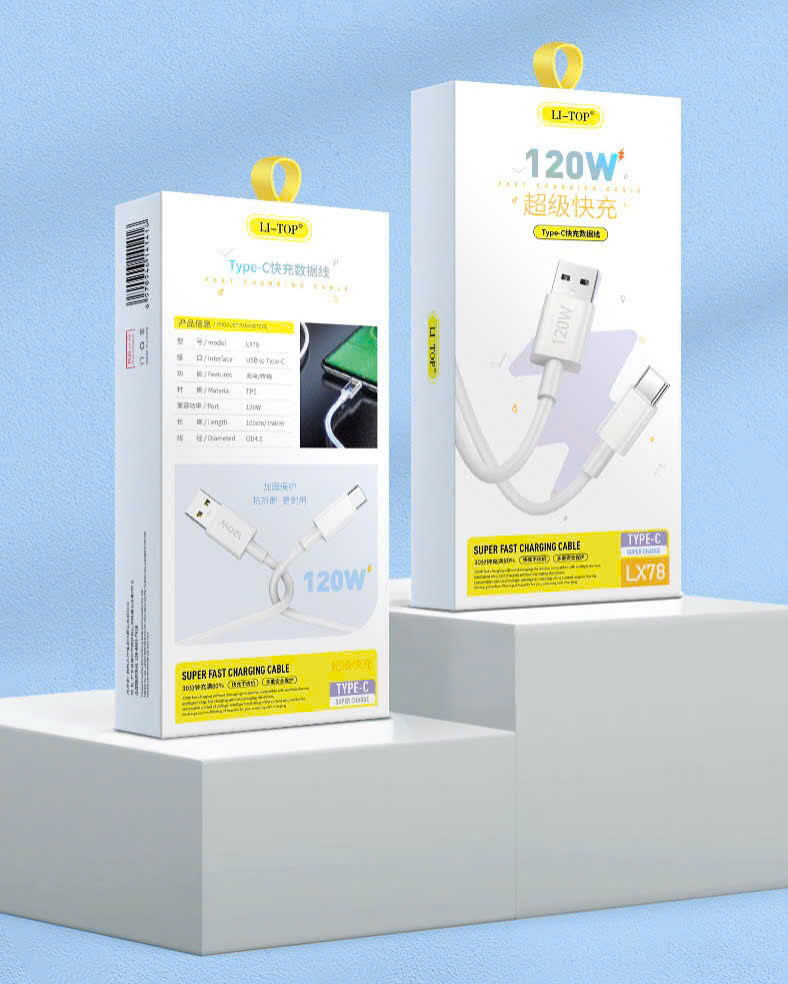 Dây sạc siêu nhanh LI-TOP LX78 120W, chân Type C, dây mịn mập, lõi 260 sợ đồng, được dùng thử 30 ngày, hàng chính hãng