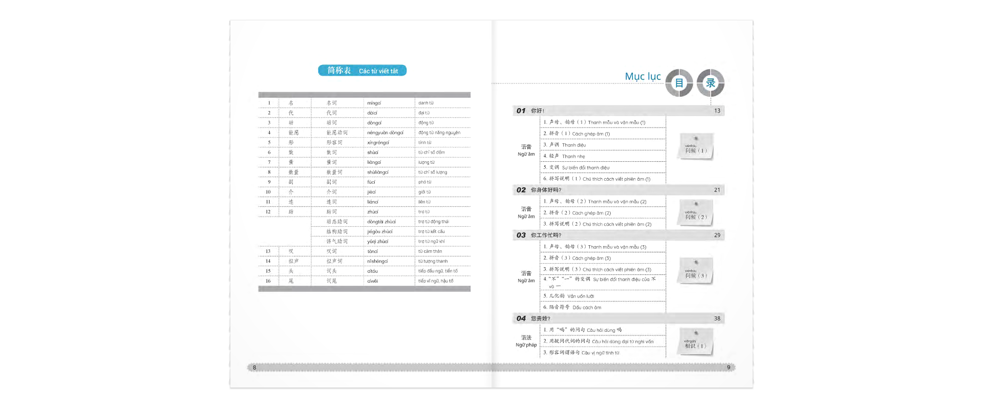 Giáo trình tiếng Trung Giao tiếp tổng hợp dành cho người Việt Nam Cuốn sách Giáo Trình Tiếng Trung Giao Tiếp Tổng Hợp Dành Cho Người Việt Nam có 15 bài, mỗi bài gồm: