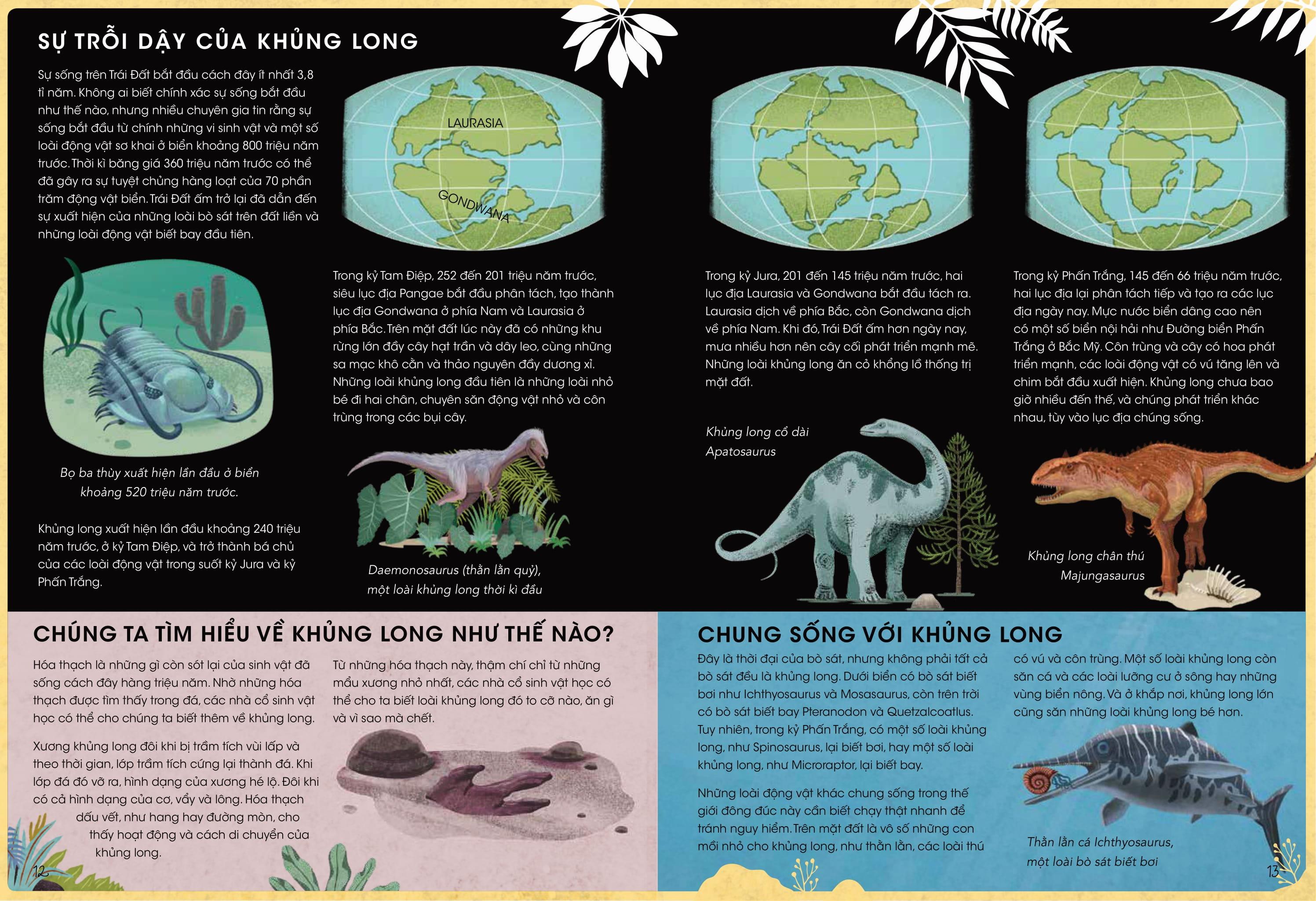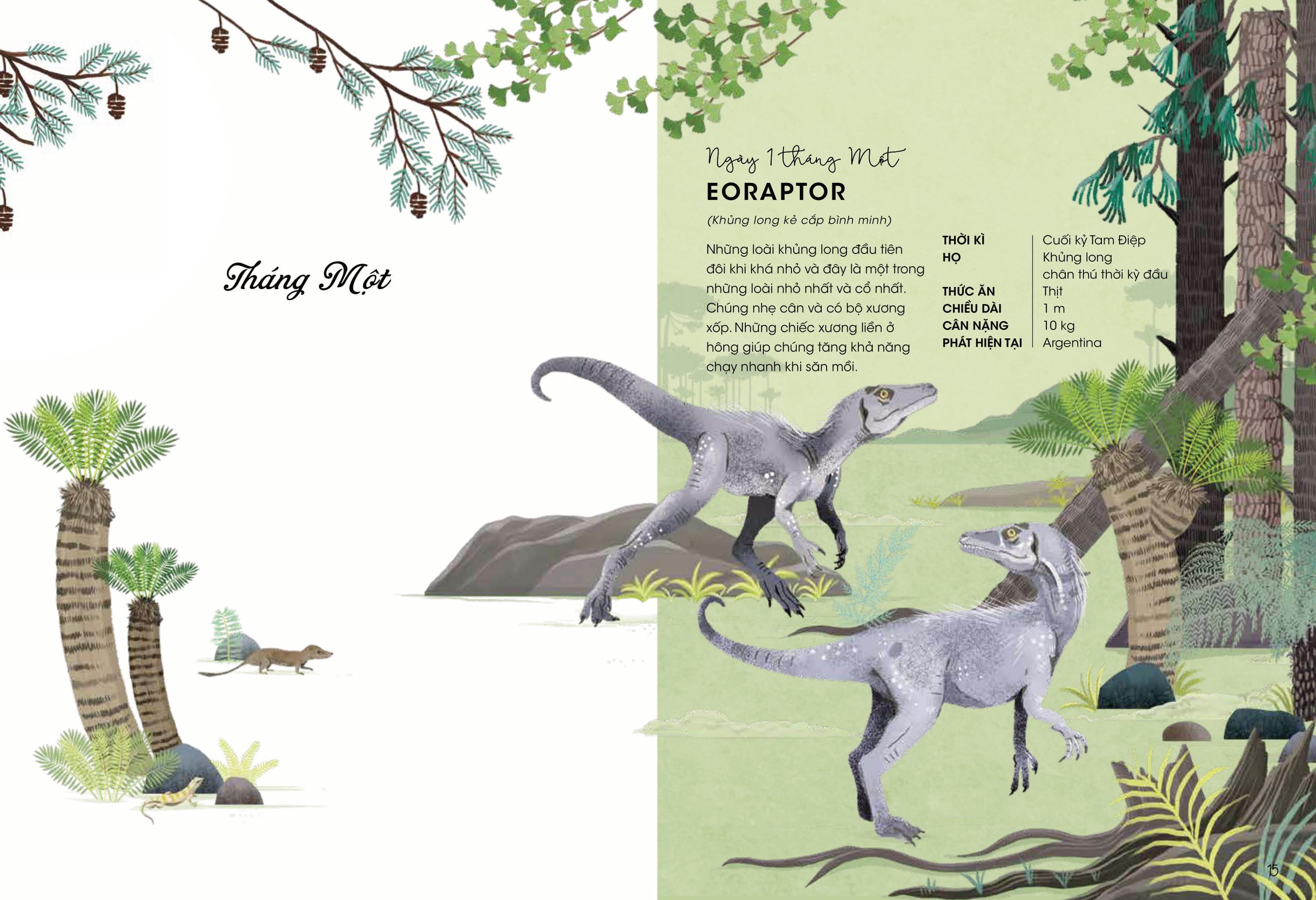 365 Ngày Khủng Long Cuốn sách ‘365 ngày khủng long’ mời bạn cùng du hành vào một thế giới cổ xưa và kỳ lạ. Trong cuộc gặp gỡ khó quên kéo dài suốt 365 ngày này, bạn sẽ được gặp đủ các loài khủng long, từ hiền lành tới hung dữ, từ nhỏ bằng bàn tay cho tới lớn như tòa nhà. Bạn sẽ thấy những cái tên quen thuộc và lạ lẫm, cùng với những loài mới được phát hiện, tất cả đều trở nên sống động với những hình ảnh minh họa tuyệt đẹp và các thông tin hấp dẫn.