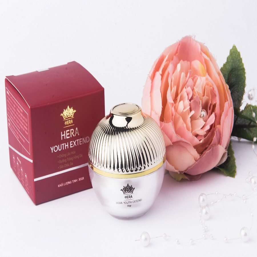 - Buổi tối: : tẩy trang (bắt buộc, dù ở nhà hay ra ngoài) – rửa mặt – dưỡng ẩm Hera Youth Extend Chỉ với 3 đến 5 phút mỗi ngày, “đánh bay” mụn, tạm biệt “chảy xệ”, xóa bỏ nám, tàn nhang. Đây là tin vui dành cho tất cả chị em về kiến thức chăm sóc da hàng ngày. Công dụng của kem chống lão hóa Hera Youth Extend Thời gian là tác nhân chính gây ra các tính trạng lão hóa, chảy xệ, da khô, tàn nhang và nám. Đặc biệt với khí hậu nóng ẩm nhiệt đới như ở Việt Nam lại càng khiến da của chị em lão hóa nhanh hơn. Từ khi bước chân lên “đấu trường sắc đẹp” Hera Youth Extend tập trung cải thiện những vấn đề sau đây: Dưỡng da cung cấp độ ẩm Mỗi làn da đều có nhu cầu và đặc điểm riêng. Việc hiểu làn da của bạn như thế nào là cách dưỡng ẩm tốt nhất. Dưỡng ẩm không có nghĩa giữ nước cho da, da luôn cần được thông thoáng để bài tiết chất nhờn. Nếu bạn làm sai cách sẽ gây ra tình trạng bít tắc lỗ chân lông, làm mụn có cơ hội “đâm chồi” mạnh mẽ hơn đó. Một phần nữa là do tuổi tác, khi chúng ta có tuổi, cơ thể yếu hơn và lúc này chúng sẽ không tự sản sinh đủ lớp sebum tự nhiên nữa. Khiến da dễ nhạy cảm hơn với các dị nguyên. Lúc này thành phần có trong mỹ phẩm Hera Youth Extend sẽ kích hoạt lớp dầu bảo vệ này giúp da mềm mượt và sáng bóng hơn. Giảm sắc tố melanin trong da Theo tạp chí khoa học Science Alert đưa tin “melanin thông thường phân bố đồng đều trên da người. Nhưng trong một số trường hợp, melanin tập trung lại thành những cụm nhỏ, và trở nên sẫm màu hơn khi tiếp xúc với ánh sáng Mặt Trời, tạo thành tàn nhang. Vết tàn nhang trở nên mờ hơn khi tiếp xúc với ít ánh nắng, chẳng hạn trong những tháng mùa đông.” Vì vậy nếu biết cách giảm sinh sắc tố melanin dư thừa, chuyển hóa melanin đen thành melanin trắng thì chị em sẽ nhanh chóng “hồi sinh” cho làn da nám, không đều màu của mình. Hera Beauty Extend “thần dược” làm đẹp này sẽ nhanh chóng cân bằng lượng melanin hiệu quả. Công dụng của kem chống lão hóa Hera Youth Extend Ngừa mụn, vết sẹo thâm Mụn thâm là “kẻ thù không đội trời chung” không chỉ có chị em phụ nữ mà ngay cả cánh mày râu. Bằng cách này hay cách khác, nhiều người đã tìm cách loại bỏ vết thâm đó đi một cách nhanh chóng. Mỹ phẩm Hera Youth Extend có công dụng như những phân tử nước nhẹ nhàng thẩm thấu sâu vào bên trong nuôi dưỡng, tái tạo lại cấu trúc da bị tổn thương, nhanh chóng làm mờ vết thâm và những tàn tích do mụn để lại. Lấy lại phong độ, tính thẩm mỹ cho người sử dụng. Chống nắng hiệu quả Phần lớn mọi người thường hay nghĩ rằng kem chống nắng có chỉ số SPF càng cao thì hiệu quả chống nắng càng tốt. Nhưng thực tế thì không hoàn toàn như vậy đâu chị em nhé. Dù chị em dùng mỹ phẩm có chứa SPF lên đến 30 thì khả năng chống lại tia UV lúc cao điểm 12h cũng chỉ là vài % thôi. Trong khi đó một vài người có làn da nhạy cảm khi sử dụng kem chống nắng chuyên dụng sẽ dẫn đến các tình trạng như bít tắc lỗ chân lông, hình thành mụn và viêm nhiễm. Hera Youth Extend có thành phần kem chống nắng được chiết xuất từ các vitamin tự nhiên và hàm lượng SPF, PA vừa đủ phù hợp với mọi làn da kể cả là bạn có sở hữu làn da nhạy cảm nhất. Phục hồi và săn chắc da Bạn có biết không? Khi bước qua độ tuổi 25, hàng năm chúng ta sẽ mất từ 1 đến 1,5% lượng collagen mỗi năm. Cho đến khi lượng collagen này bị hao hụt quá nhiều cũng là lúc da bạn sẽ mang như tổn thương nặng nề của dấu hiệu tuổi tác. Việc bổ sung collagen đúng lúc, kịp thời, đúng cách sẽ giúp bạn đẩy lùi được các tình trạng da kém săn chắc, nhũng nhão, nhiều nếp nhắn. Với thành phần collagen có trong Hera Youth Extend sẽ nhanh chóng khiến thời gian phải “ngã ngũ” chịu thua.