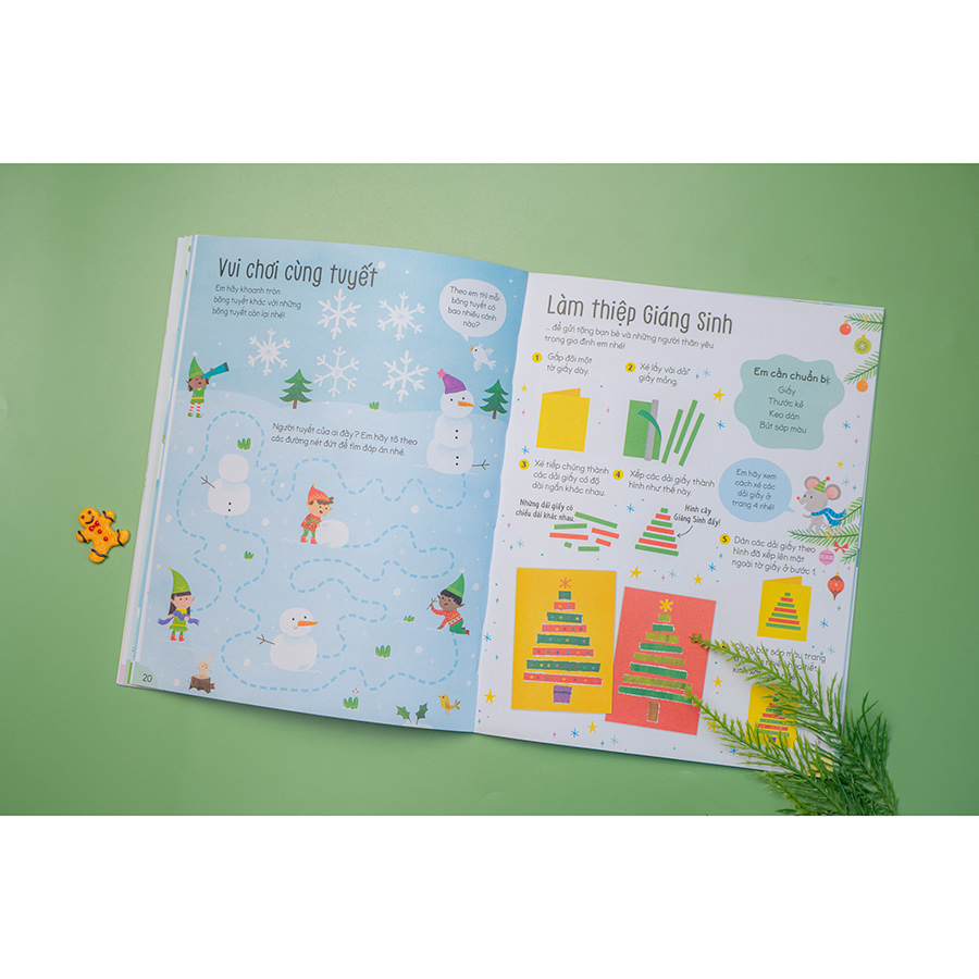 Ngoài ra còn rất nhiều các hoạt động khác như: Giải ô chữ, nối số, vẽ tranh, giải mã mê cung… đang chờ bạn nhỏ khám phá trong cuốn sách này đấy! Hãy cùng thỏa sức sáng tạo để làm nên một mùa Giáng Sinh thật diệu kỳ nhé!