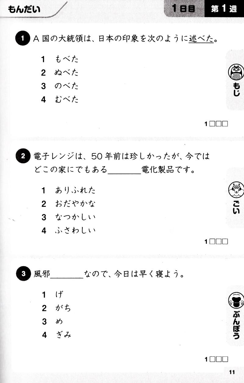 Điểm đặc biệt là sách được thiết kế theo ngày, mỗi ngày người học có thể ôn cả 3 kỹ năng : Từ vựng, Ngữ pháp, Hán tự chỉ với 15 phút.