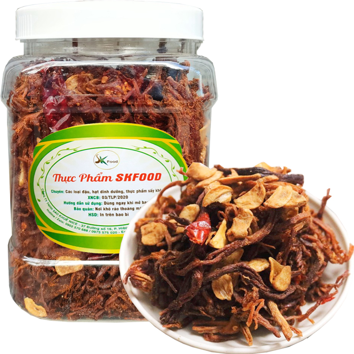 Xuất xứ : Việt Nam. Ngày sản xuất: In trên bao bì Trọng lượng: In trên bao bì Thương Hiệu SK FOOD Sản phẩm có giấy chứng nhận an toàn vệ sinh thực phẩm. Hướng dẫn sử dụng: Dùng trực tiếp, không cần chế biến. Hướng dẫn bảo quản: Nơi khô ráo thoáng mát, tránh ánh nắng mặt trời. Dùng không hết có thể đóng kín miệng nắp để dùng lần sau. Không sử dụng sản phẩm đã hết hạn. Được lựa chọn từ nguyên liệu thịt tươi nguyên chất 100%, đảm bảo không pha trộn bột hay thành phần có hại cho sức khỏe. Kết hợp cùng các gia vị như tỏi, nước mắm, ớt…giúp món ăn đậm đà, cay vừa, phù hợp cho mọi lứa tuổi. Món ăn này là món ăn vặt hot nhất mọi thời điểm, bạn có thể mang theo khi đi du lịch cùng mọi người để nhâm nhi hoặc ăn vặt lúc xem phim, lai rai cùng chiến hữu bên bàn nhậu…. LƯU Ý: SẢN PHẨM CÓ THỂ THAY ĐỖI MẪU MÃ TÙY VÀO TỪNG ĐỢT NHẬP HÀNG