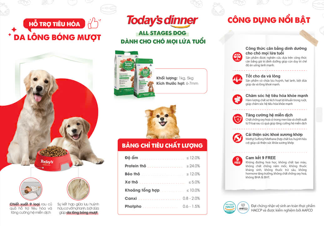 Today's dinner - hạt thức ăn cân bằng dinh dưỡng cho chó Với nguồn nguyên liệu tự nhiên, đặc biệt là CHIẾT XUẤT 9 LOẠI TRÁI CÂY, RAU CỦ (cà chua, củ cải, bông cải