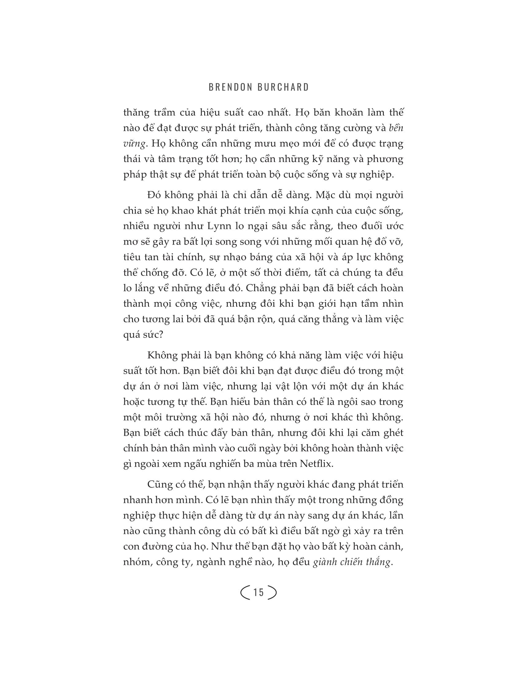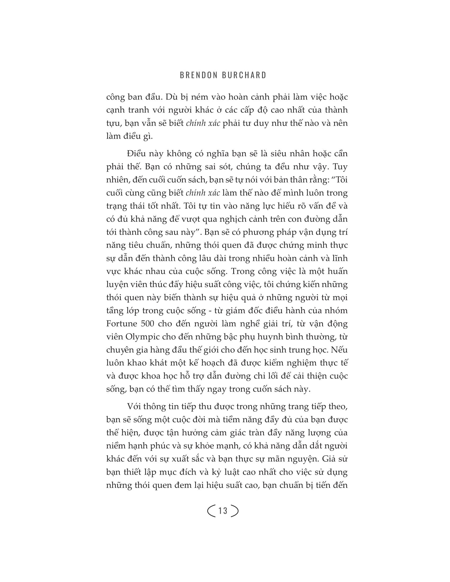 Mua tại TiktokTất cả chúng ta đều muốn có hiệu suất cao trong mọi lĩnh vực cuộc sống, từ học tập, làm việc, đến mở rộng mối quan hệ hay xử lý các vấn đề cá nhân. Nhưng ta phải làm những gì, phải hình thành những thói quen nào để đạt được thành công lâu dài và hạnh phúc bất kể tuổi tác, nghề nghiệp, ưu điểm hay tính cách của ta? Brendon Burchard – một trong những nhà huấn luyện uy tín nhất thế giới hiện nay về vấn đề phát triển bản thân đã chỉ ra 6 thói quen cần có để tối ưu hiệu suất làm việc. Đó là: