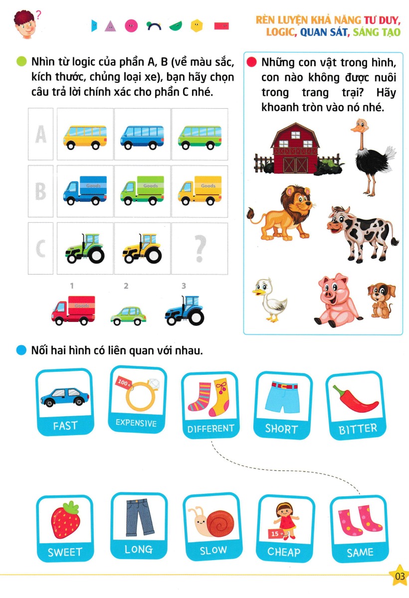 668 Câu Hỏi Phát Triển Trí Thông Minh Cho Trẻ - Tập 4 Bộ sách 668 Câu Hỏi Phát Triển Trí Thông Minh Cho Trẻ nhằm phát triển IQ,EQ, Cung cấp những trò chơi toán học úp trẻ phát huy tối đa khả năng nhận thức, tư duy phân kỳ, tưởng tượng, tri giác về không gian, phán đoán, suy luận và thông minh cảm xúc giúp trẻ rèn luyện tư duy một cách toàn diện. Nhiều bài trong bộ sách được trang bị để có sự tương tác giữa bố mẹ và con cái, vừa nân cao năng lực tuy duy của mình vừa giúp trẻ phát triển các kỹ năng tư duy cần thiết để trẻ xây dựng kỹ năng, sự khéo léo, tính chính xác và rèn luyện độ kiên trì