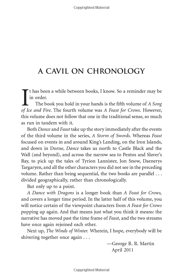 HBO's hit series A GAME OF THRONES is based on George R R Martin's internationally bestselling series A SONG OF ICE AND FIRE, the greatest fantasy epic of the modern age. A DANCE WITH DRAGONS: AFTER THE FEAST is the SECOND part of the fifth volume in the series. 'Vivid, rich, multi-layered and utterly addictive' Daily Express. The future of the Seven Kingdoms hangs in the balance. In King's Landing the Queen Regent, Cersei Lannister, awaits trial, abandoned by all those she trusted; while in the eastern city of Yunkai her brother Tyrion has been sold as a slave. From the Wall, having left his wife and the Red Priestess Melisandre under the protection of Jon Snow, Stannis Baratheon marches south to confront the Boltons at Winterfell. But beyond the Wall the wildling armies are massing for an all sides bitter conflicts are reigniting, played out by a grand cast of outlaws and priests, soldiers and skinchangers, nobles and slaves. The tides of destiny will inevitably lead to the greatest dance of all.