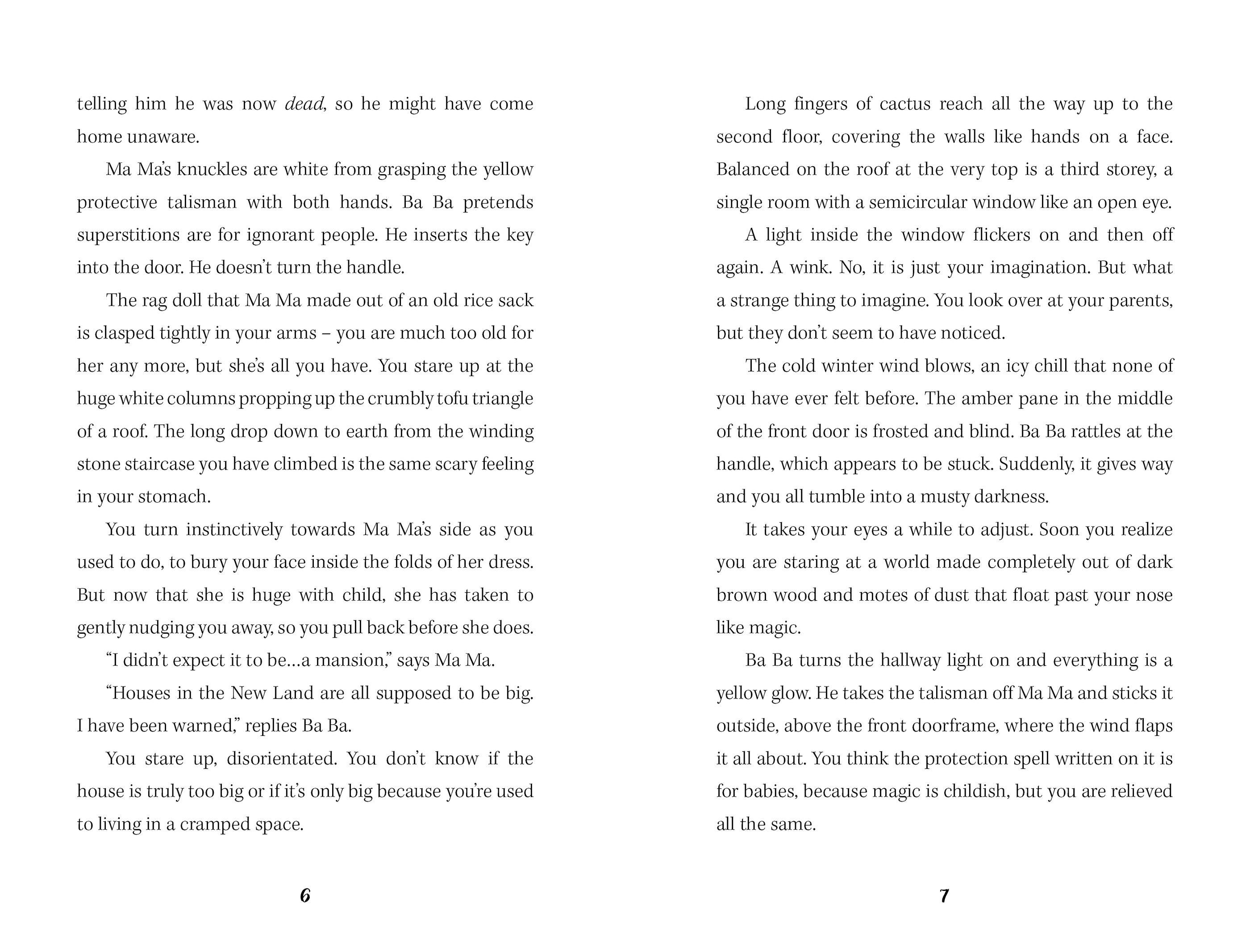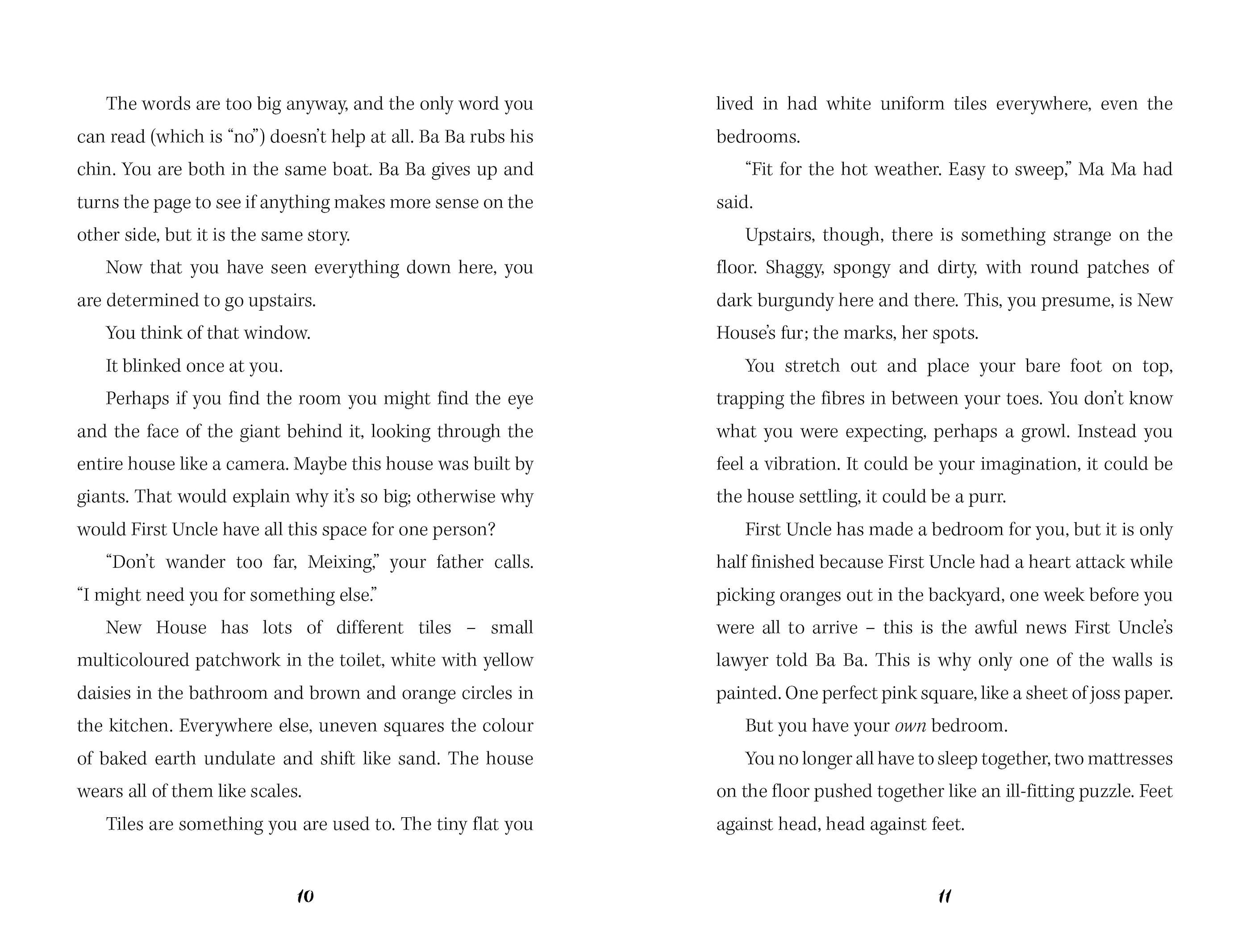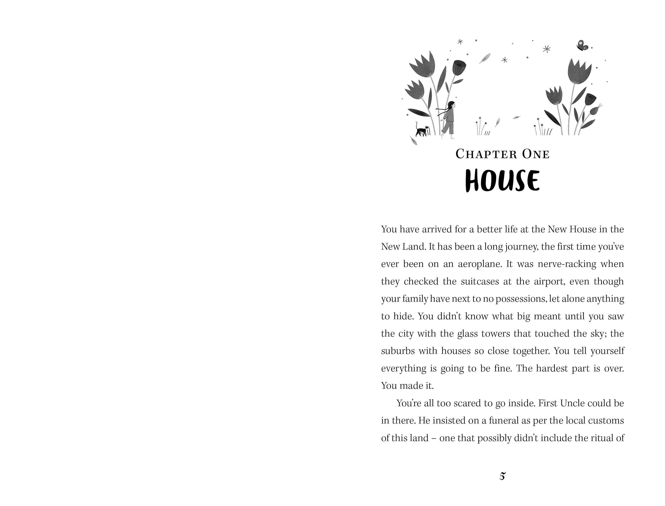 Meixing Lim and her family have arrived in the New Land to begin a New Life. Everything is scary and different. Their ever-changing house is confusing and she finds it hard to understand the other children at school. Yet in her magical glasshouse, with a strange black-and-white cat, Meixing finds a place to dream.