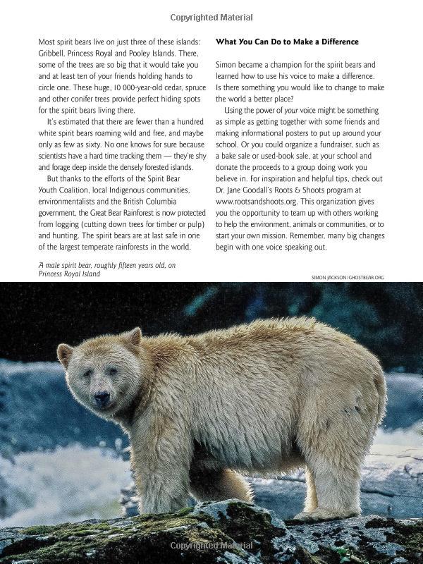 As a child, Simon Jackson found navigating the world of the school playground difficult. He felt most at home in the woodlands, learning about and photographing wildlife. As a teenager, he became fascinated with spirit bears, a rare subspecies of black bear with creamy white fur. These elusive creatures were losing their habitat to deforestation, and Simon knew he had to do something to protect them. He decided he would become the voice for the spirit bears. But first, he would have to find his own.