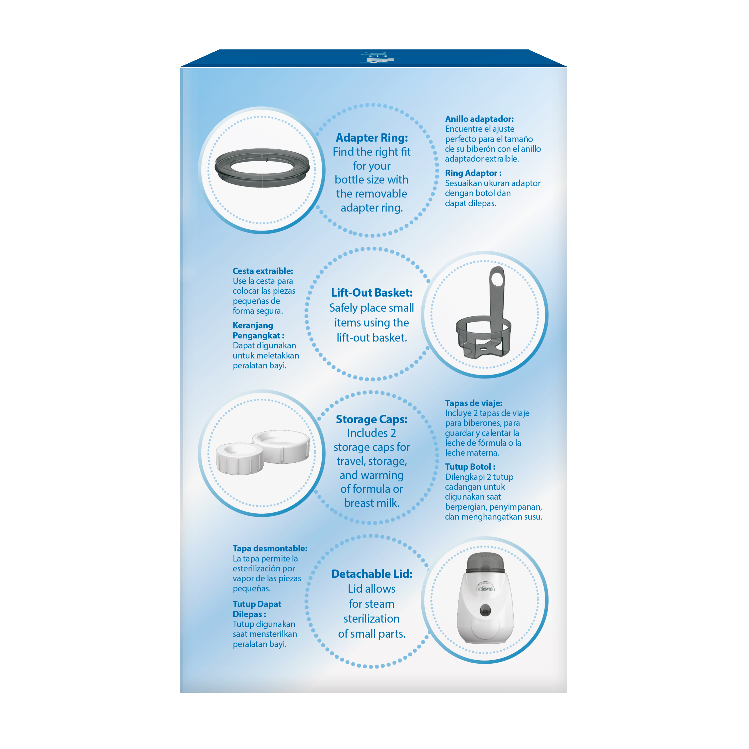 Máy hâm sữa NutriSmart hâm nóng bình sữa, túi đựng sữa mẹ hoặc thậm chí cả lọ đựng thức ăn cho bé trong khoảng thời gian vừa đủ, với phương pháp hâm nóng phù hợp.