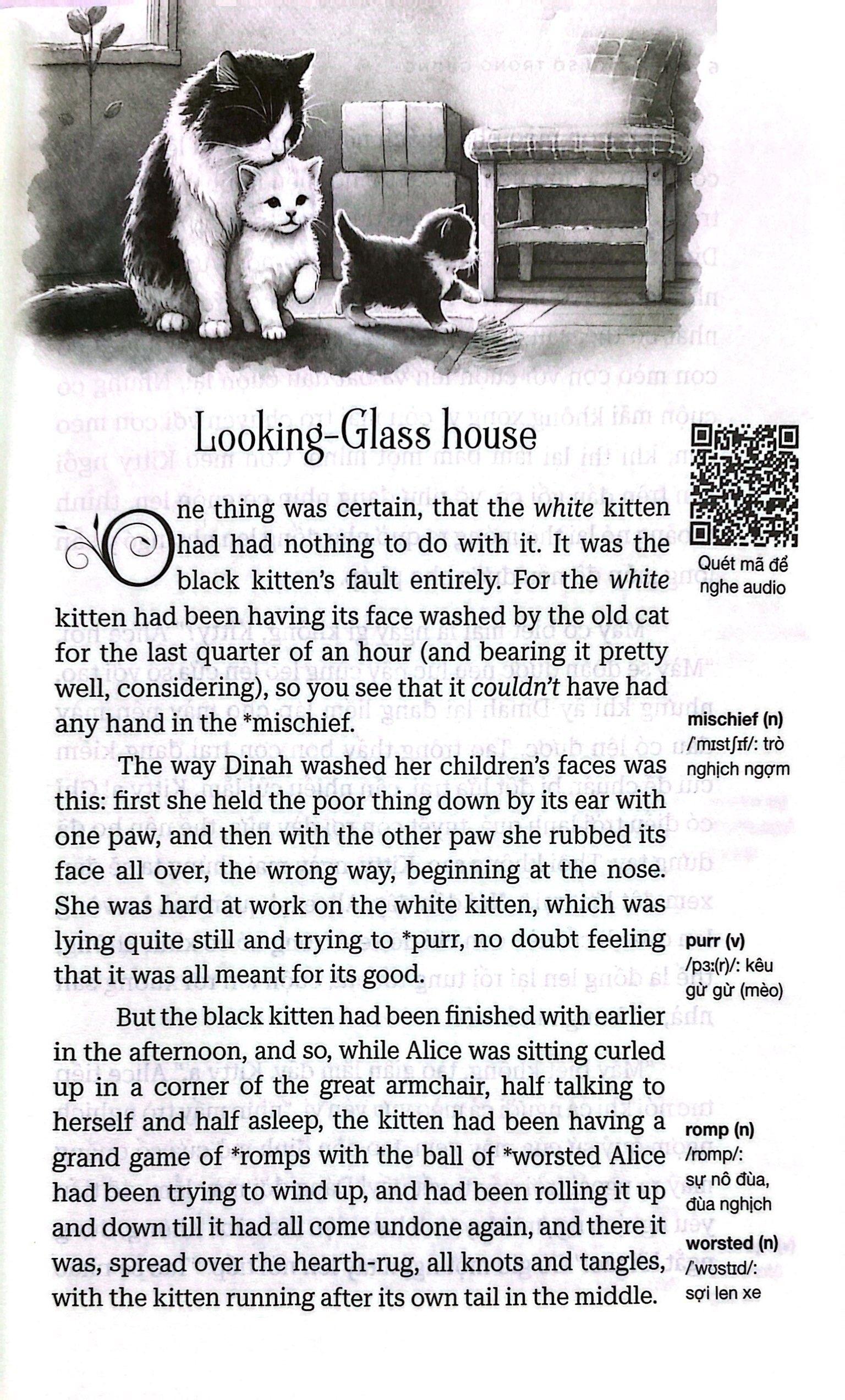 – Hỗ trợ học tiếng Anh tiện lợi:Alice ở xứ sở trong gươngkhông chỉ là một câu chuyện để đọc mà còn là một công cụ học tiếng Anh hữu ích. Các ghi chú từ vựng và phiên âm kèm theo sẽ giúp bạn tiếp cận nội dung dễ dàng hơn và làm giàu vốn từ vựng của m.ình.
