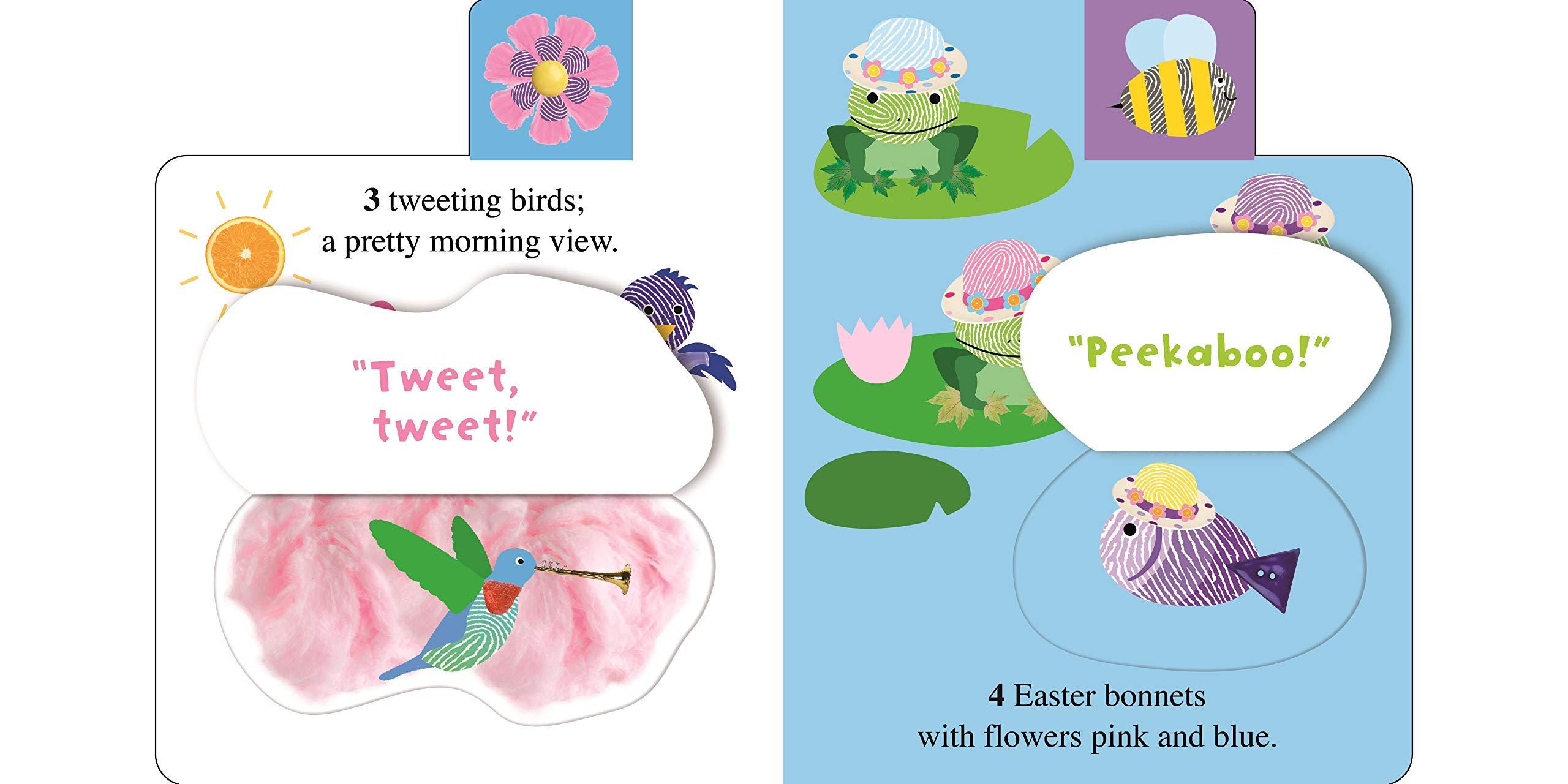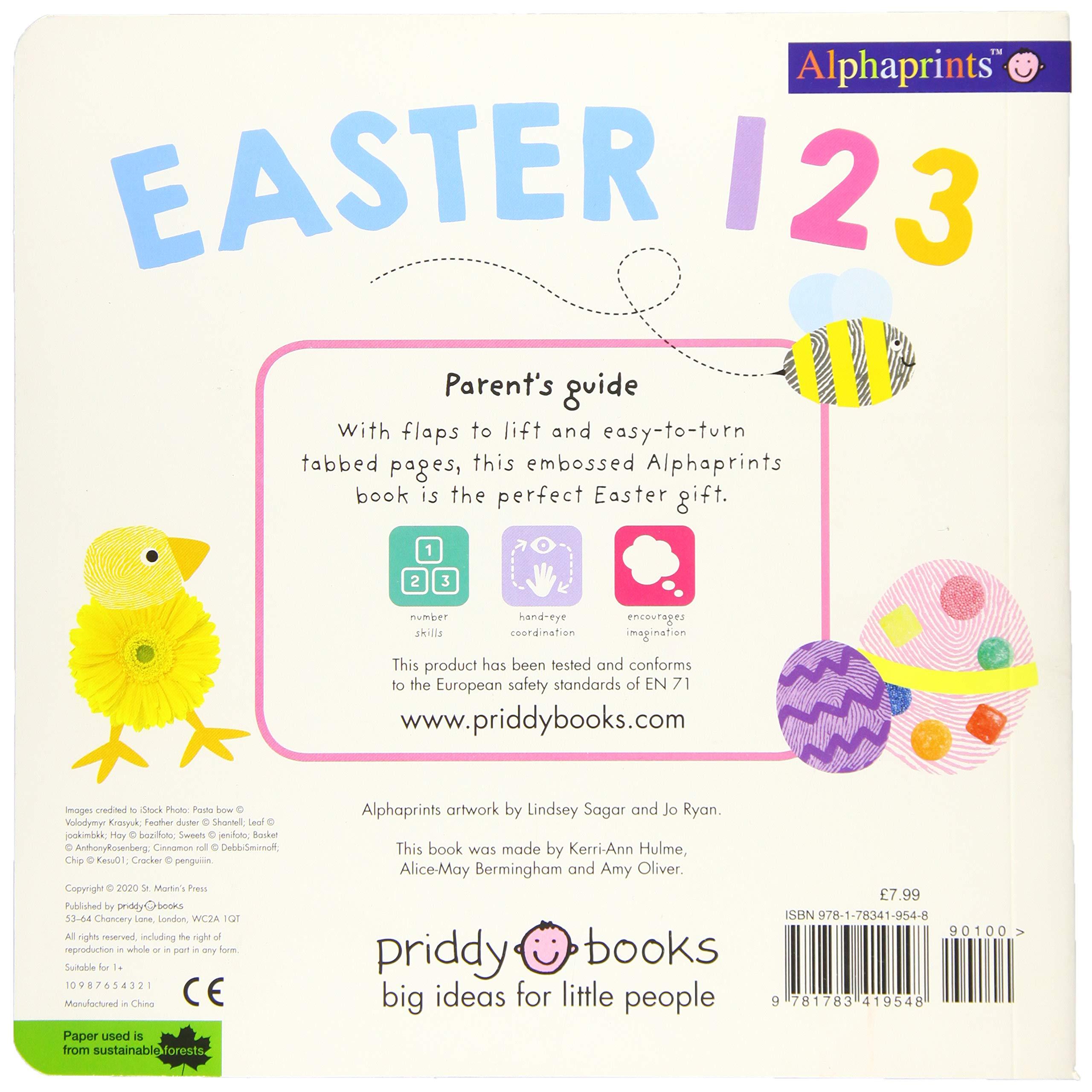 Alphaprints Easter 123 Alphaprints make learning to count fun in this Easter themed tabbed lift-the-flap book. Sweet rhymes accompany Easter animals and items ingeniously created from fingerprints and photographs of everyday things. A tabbed board
