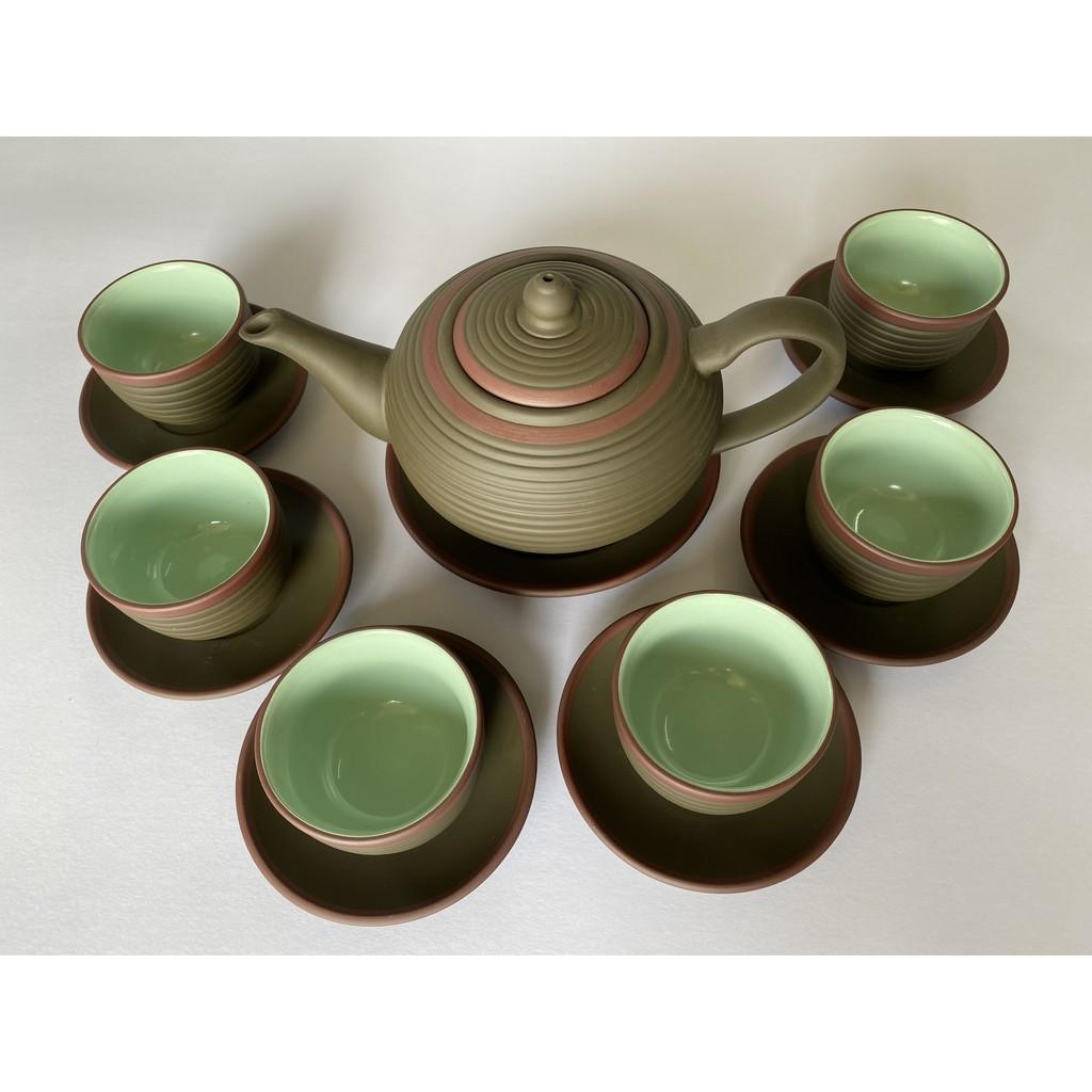 - BỘ SẢN PHẨM GỒM: 1 ẤM TRÀ, 6 CHÉN, 6 ĐĨA KÊ, 1 HỘP CHÈ, 1 GẠT TÀN, 1 ỐNG TĂM - DUNG TÍCH ẤM: 660ml; ĐƯỜNG KÍNH MIỆNG CHÉN: 5.7cm - CHÉN CAO: