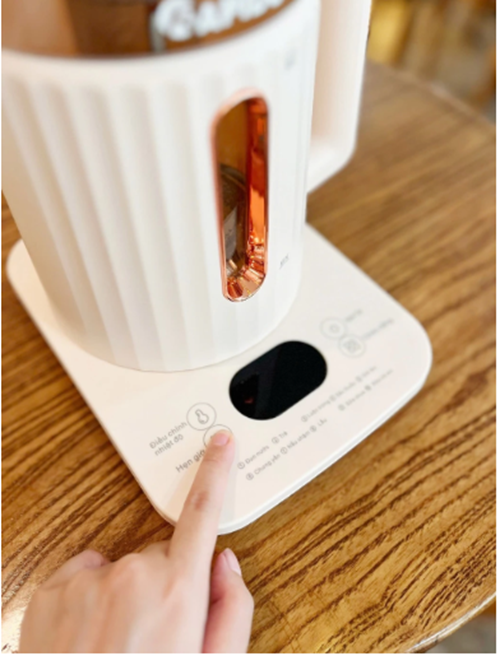 Điêm nâng cấp phiên bản 2024 + Có 2 phương pháp điều chỉnh nhiệt độ: vuốt sang trái, phải và nhấn các nút để kiểm soát nhiệt độ + Trên thân ấm có khắc logo