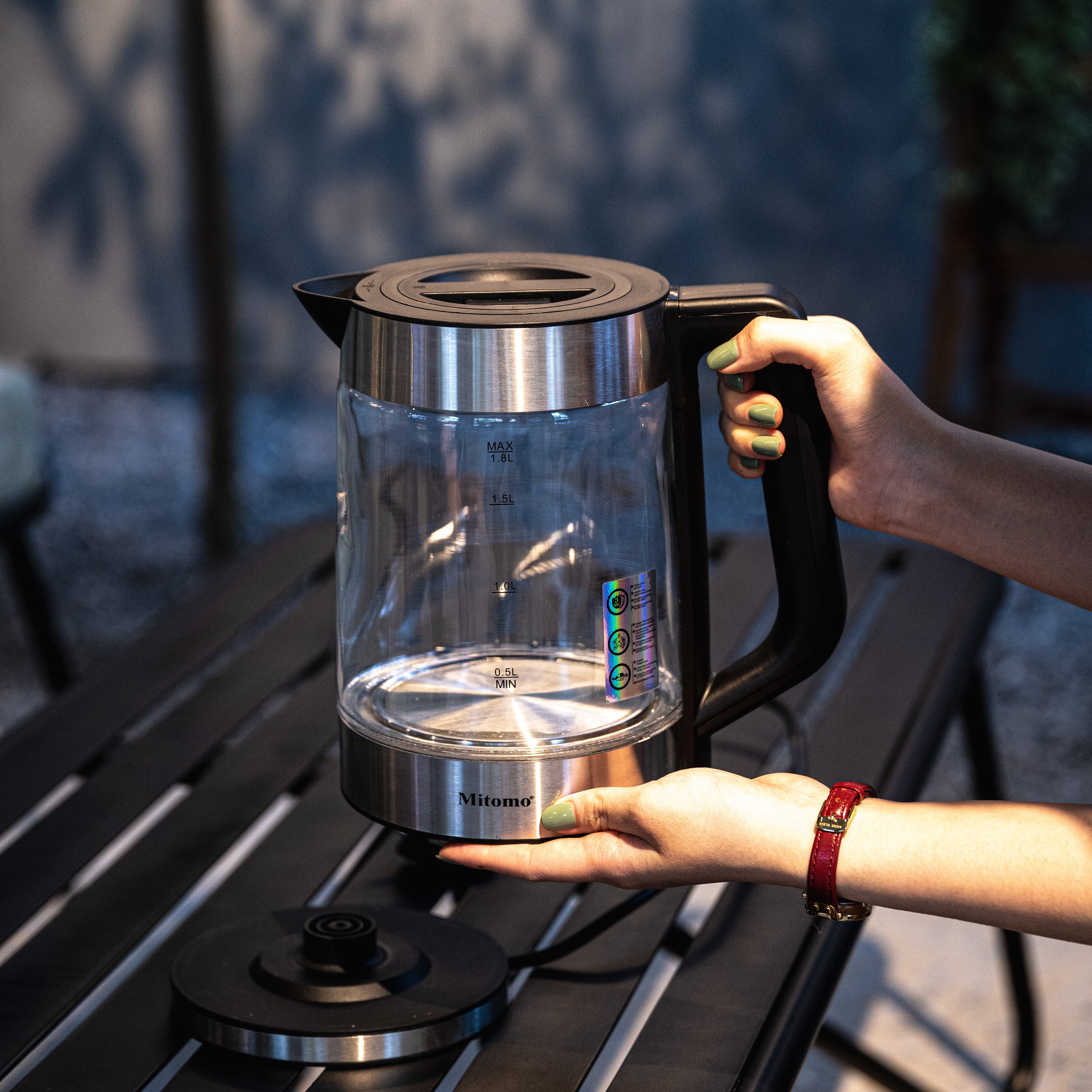 ✨Ấm đun siêu tốc Thủy tinh Mitomo ST-220 dung tích 1.8L Hàng chính hãng