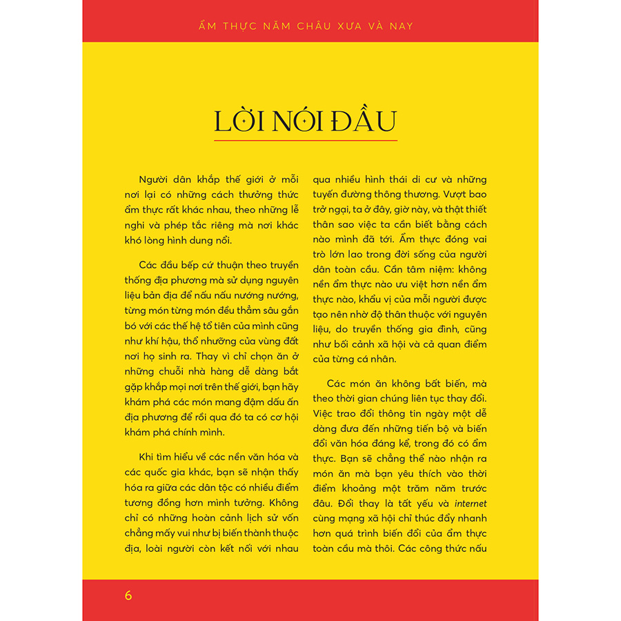 Nhân loại khắp thế giới có cách thưởng thức ẩm thực khác biệt, mỗi nơi tuân theo những lễ nghi và phép tắc riêng mà nơi khác khó lòng hình dung. Các đầu bếp địa phương thuận theo truyền thống và sử dụng nguyên liệu bản địa để chế biến thức ăn, từng món đều gắn kết sâu sắc với thế hệ đi trước cũng như khí hậu, thổ nhưỡng của vùng.