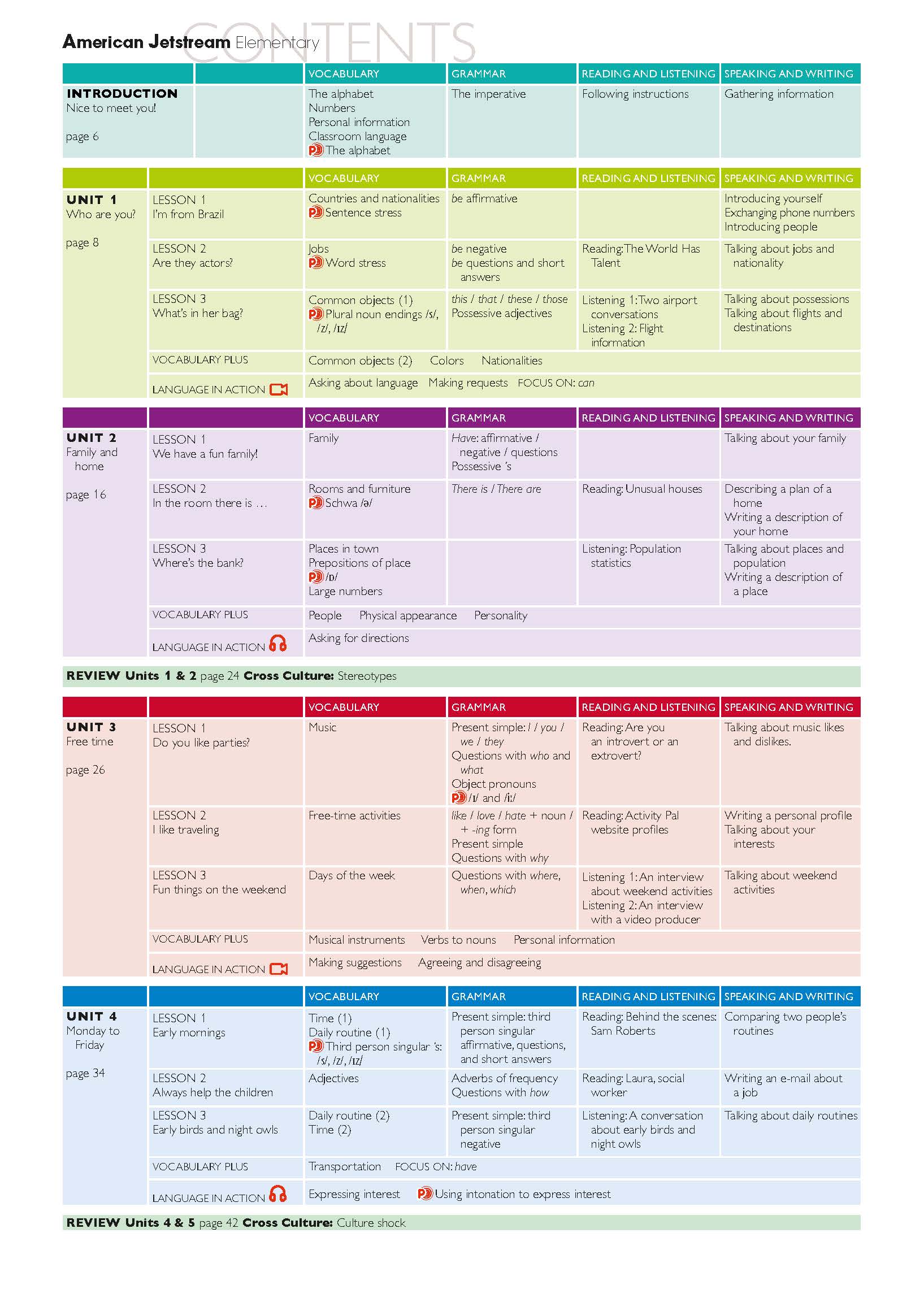 Share It! 4 Workbook The Workbook provides reinforcement of the Student Book lessons' content, and can be used in class or as homework.