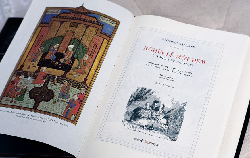 Tại Việt Nam, bản chuyển ngữ Nghìn lẻ một đêm của dịch giả Phan Quang từ bản Pháp ngữ Les mille et une nuits nổi tiếng của học giả Antoine Galland đã nhận được sự yêu mến của đông đảo bạn đọc. Nhờ tình yêu và lòng say mê kiệt tác của Antoine Galland, nhà báo lão thành Phan Quang đã kỳ công sưu tầm và tìm hiểu nhiều tư liệu quý hiếm liên quan đến tác phẩm cũng như đạo Hồi và văn hóa Ả Rập, để rồi đưa đến tay bạn đọc nước nhà một bản dịch xuất sắc và hoàn chỉnh.