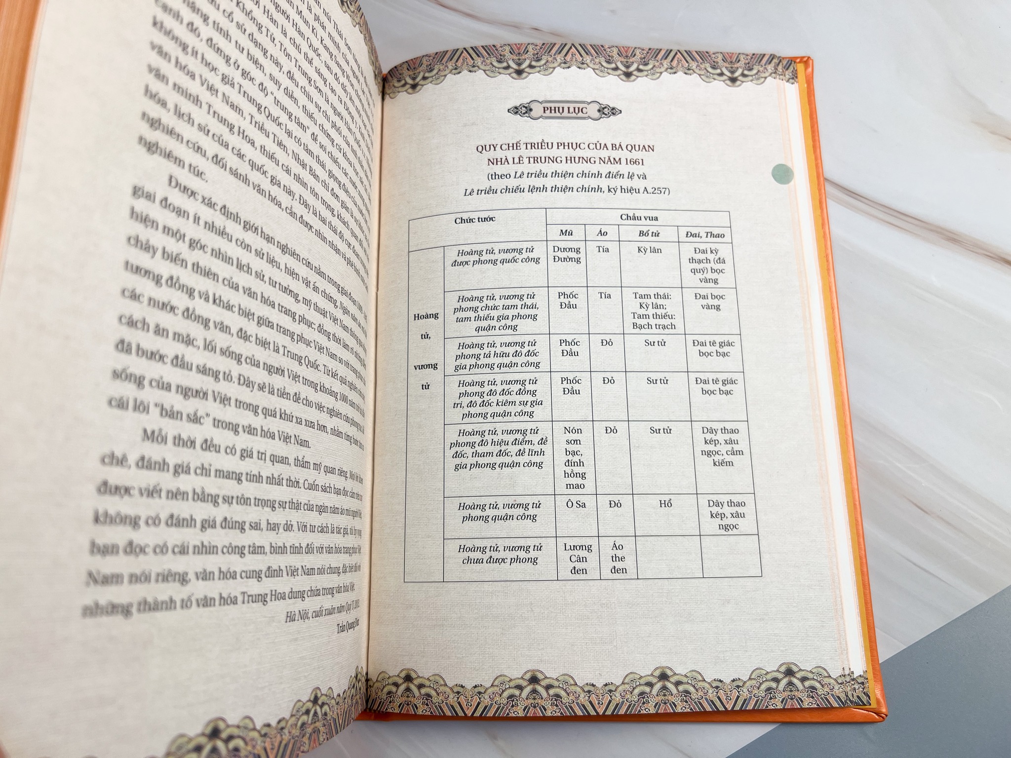 Mua tại Tiktok“Ngàn năm áo mũ”, công trình nghiên cứu công phu của Trần Quang Đức nhằm dựng lại bức tranh trang phục Việt Nam trong cung đình và ngoài dân gian trong khoảng một nghìn năm từ thời Lý đến thời Nguyễn (1009 - 1945). Về nội dung, ấn bản này đã có điều chỉnh và sửa chữa một số thông tin so với bản phổ thông in lần đầu năm 2013, đồng thời bổ sung một số ảnh chụp có chất lượng tốt hơn. QUY CÁCH Ấn bản cao cấp và giới hạn “Ngàn năm áo mũ” được thiết kế gáy theo concept liên hoàn với 2 cuốn “Phù thuật và tín ngưỡng An Nam” và “Bảo tàng Khải Định” (ấn bản chưa ra mắt). Quy cách cụ thể của cuốn này được mô tả như dưới đây.