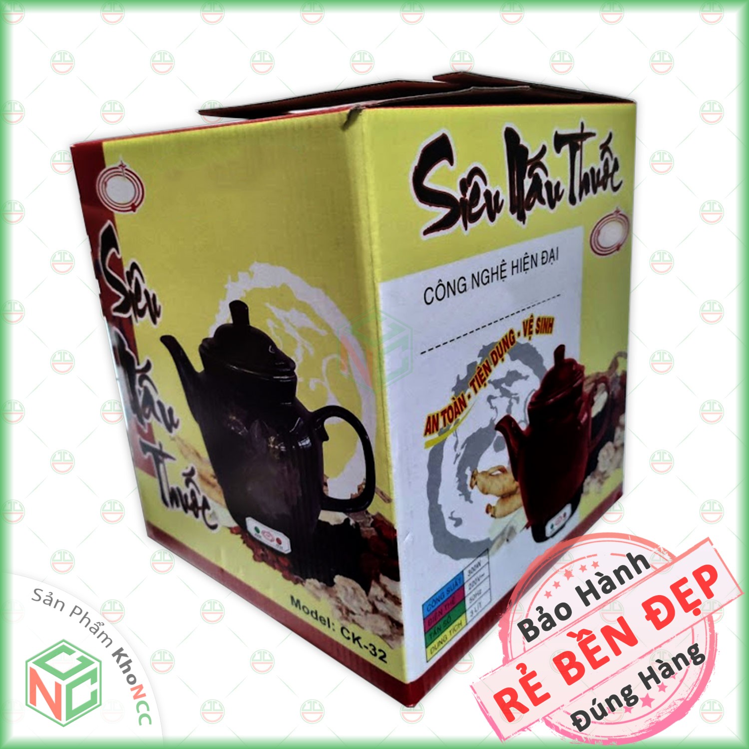 - Công suất: 300W - Dung tích: 3 lít - Điện Thế/ tần số: 220V/50Hz - Chất liệu: Gốm Bát Tràng Việt Nam - Men không phai màu - Thuốc nấu ra hết, tiết kiệm