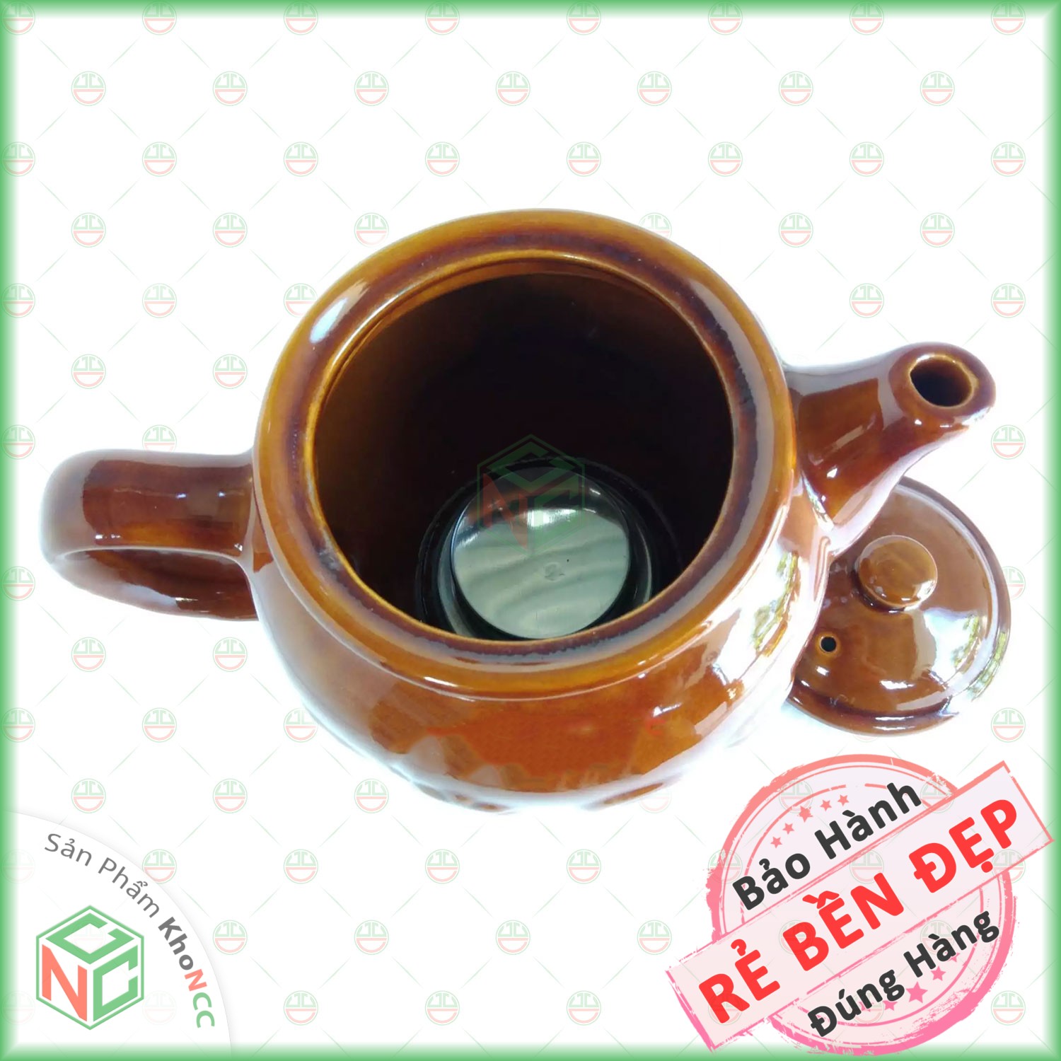- Chất liệu gốm cao cấp phủ men không chì chống phai màu cũng như trầy xước, khi gõ vào thân siêu t.huốc bạn sẽ nghe tiếng rất trong chứ không đục như một số sản phẩm khác. Mặt ngoài của siêu t.huốc được phủ một lớp men bóng không bị phai màu, khó trầy xước cũng như ko bị bám bẩn.