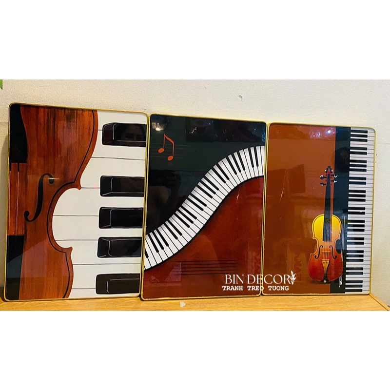 Tranh treo tường trang trí decor âm nhạc 8 - Kích thước của tranh : Kích thước : 25x35cmx3 tấm - 30x45cmx3 tấm - 40x60cmx3 tấm - 50x70cmx3 tấm - Chất liệu : Tráng gương