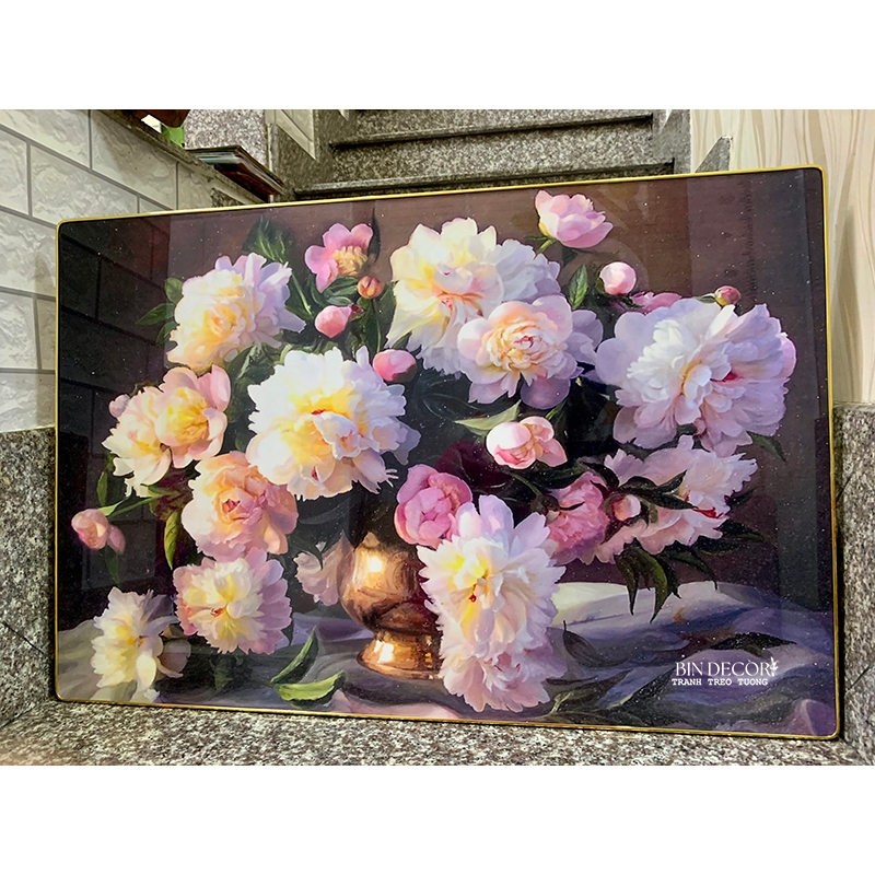 Tranh treo tường hoa mẫu đơn - Kích thước của tranh : Kích thước : 45x65cm - 55x80cm - 65x95cm - Chất liệu : Tráng gương - Khách hàng muốn thay đổi sản phẩm ,