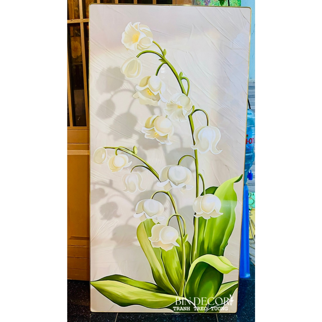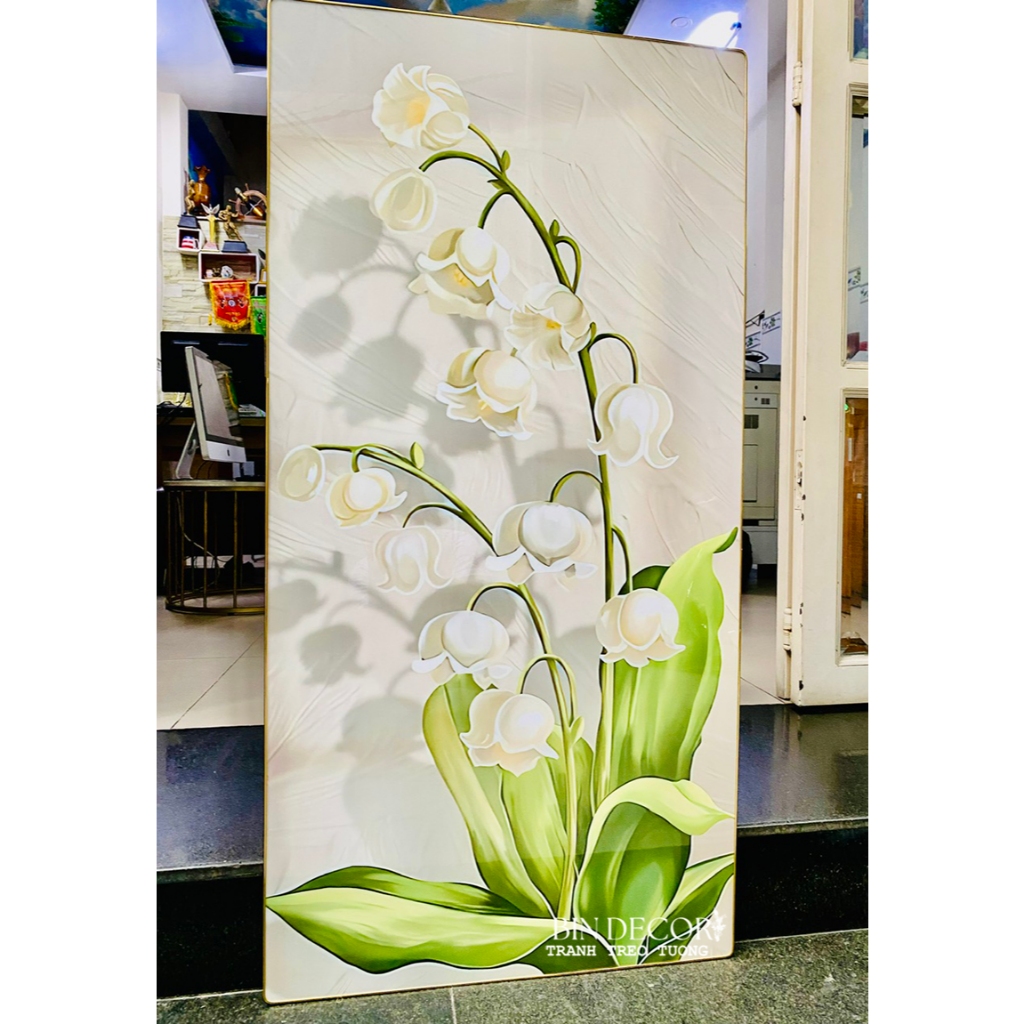 ✨(ẢNH THẬT) Tranh treo tường hoa linh lan trắng bo viền vàng kèm đinh treo
