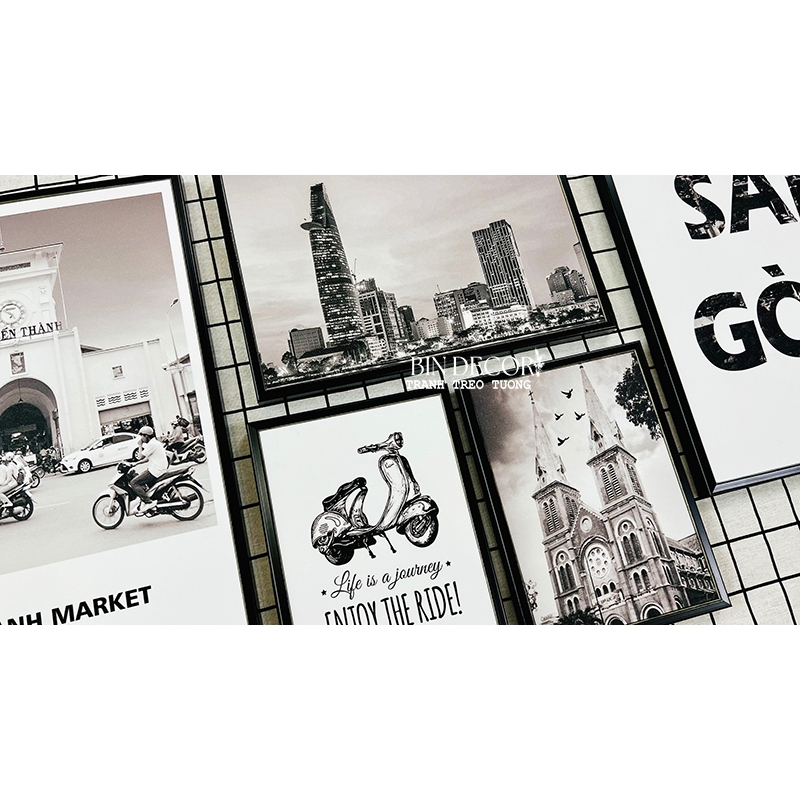 ✨(ẢNH THẬT) Tranh treo tường trang trí decor sài gòn trắng đen có sẵn khung