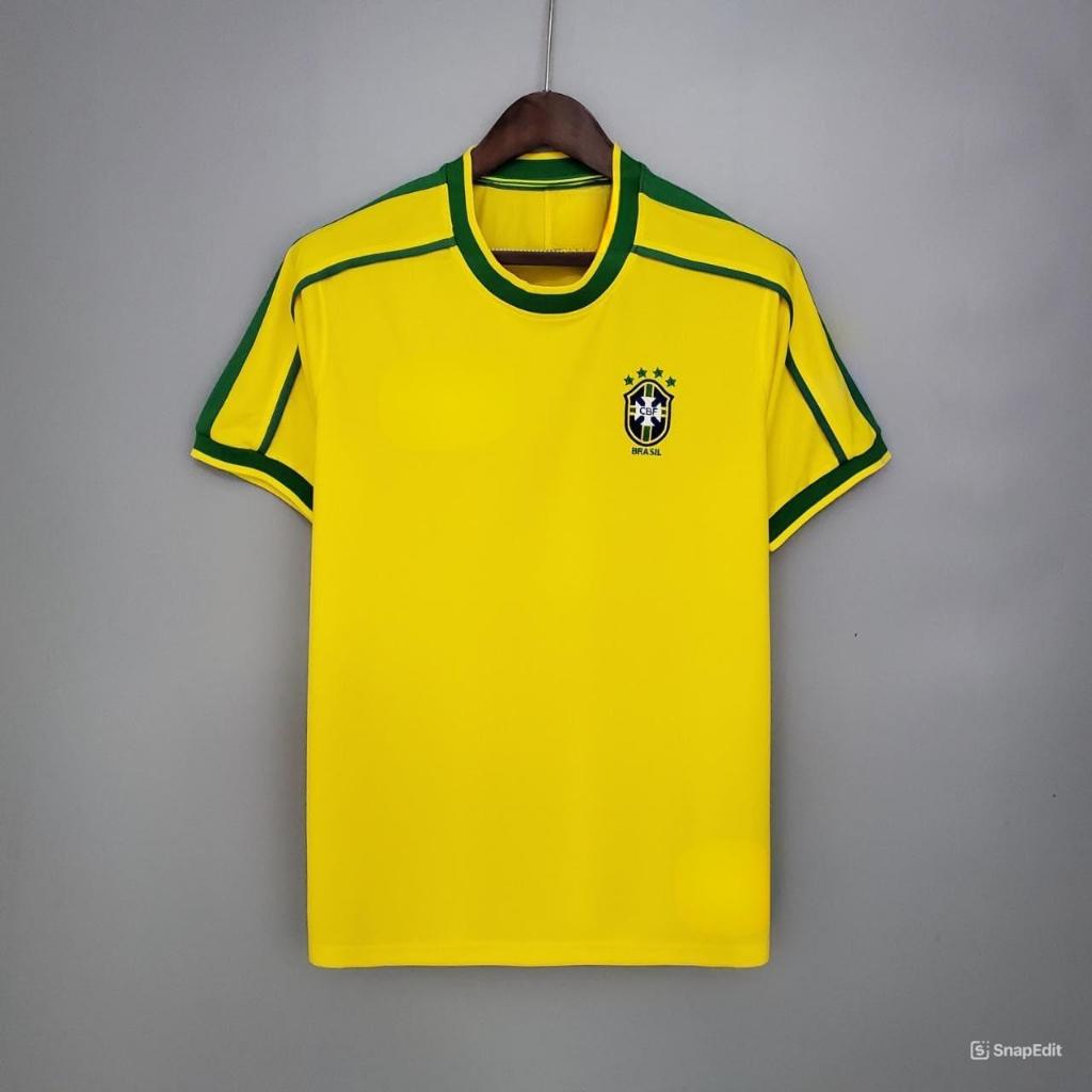 ✨Áo Bóng Đá Retro Tuyển Brazil 1998 - Sân Nhà bản cao cấp vải Cotton Polyester
