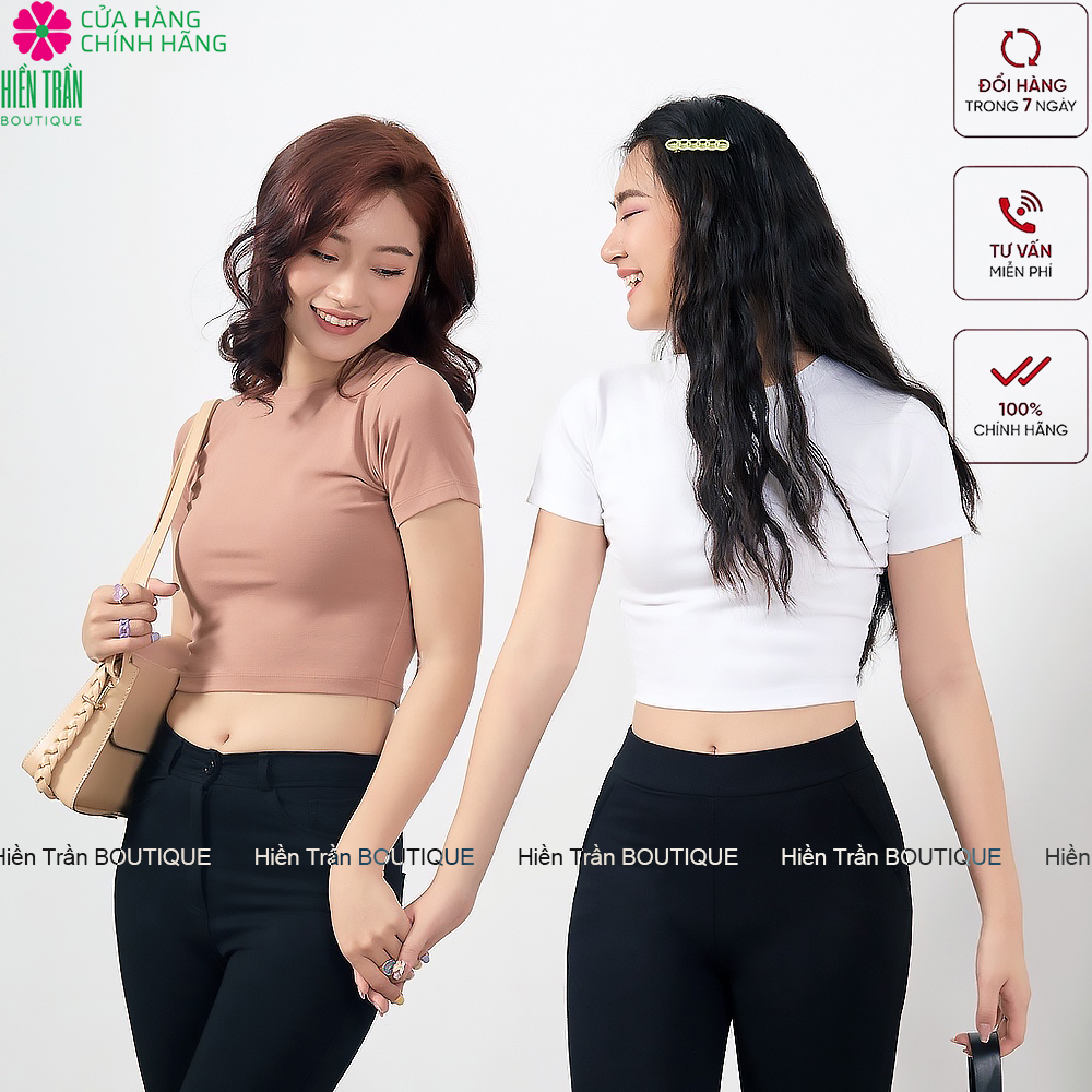 ✨Áo croptop Hiền Trần BOUTIQUE cổ tròn cộc tay vải thun ôm body crotop nữ cotton co giãn tốt