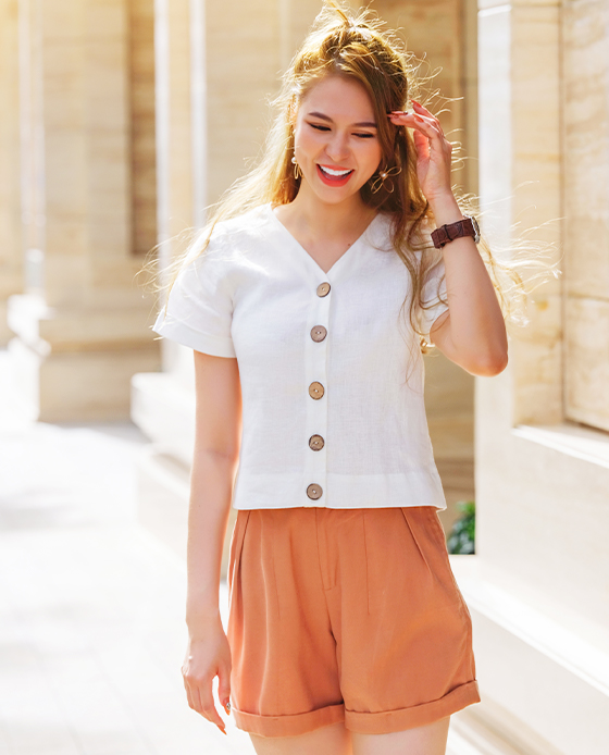 Áo Croptop Linen Calla TOP168 Thời trang thiết kế Hity Kiểu dáng áo croptop ngắn ngang lưng quần (vừa qua eo) Cổ V không ve Tay ngắn, lật bảng lai tay Cài bằng nút gỗ phía trước CHẤT LIỆU Linen Cắt may thủ công tinh tế tại Nha Trang, Việt Nam Linen hay Lanh là một trong những chất liệu lâu đời nhất ở trên thế giới. Tên gọi “linen” có nguồn gốc từ “linum” (tiếng Latin) hoặc “linon” (tiếng Hy Lạp), từ “lanh” trong tiếng Việt bắt nguồn từ “lin”trong tiếng Pháp. Vải linen được dệt từ sợi của cây lanh tự nhiên. Người ta lấy thân cây lanh – loại cây có nguồn gốc gần các hồ nước ở Thụy Sĩ tách nhỏ thành các sợi và dệt thành vải. Các sợi vải được dệt chặt tay và tương đối to, có thể nhìn thấy từng sợi trên bề mặt vải cũng như cảm nhận bằng tay rất rõ rệt. Sợi cây lanh rất sắc nhưng lại dễ dàng bị hư hỏng trong quá trình thu hoạch, do đó để có thể thu hoạch được sợi lanh phải đòi hỏi các kỹ thuật và công nghệ tiên tiến. Những người thợ sẽ tước các cây lanh vừa thu hoạch được thành những sợi dài. Cách nhanh nhất là sử dụng vi khuẩn để chúng có thể ăn hết phần thân cây bên ngoài. Sau đó những sợi mềm này sẽ được tập hợp lại và tách thành các sợi dài, từ những sợi dài này mà họ có thể dệt chúng được thành vải. Vải linen tự nhiên đặc biệt an toàn, thân thiện với người sử dụng. Vải có độ bền cao hơn rất nhiều so với các loại vải khác, lên tới khoảng 5,5 đến 6,5 gm/den (đơn vị đo độ bền của vải). Vải linen cũng có khả năng thấm hút tốt và bay hơi nhanh, giúp cho bề mặt vải khô ráo một cách tự nhiên và nhanh chóng, tạo cảm giác thoải mái khi sử dụng. Đặc biệt, vải linen còn có khả năng chịu nhiệt tốt, có thể phơi trực tiếp dưới ánh nắng mặt trời. Với một số loại vải khi phơi phóng dưới điều kiện nhiệt độ cao sẽ làm vải bị phai màu. Nhưng vải linen lại hoàn toàn ngược lại. Một đặc điểm quan trọng nhất, vải linen nhẹ, chất vải mát, sờ cực thích. Hầu hết khi lựa chọn quần áo mùa hè, người ta hay chọn chất liệu vải không dệt linen vừa bền vừa thoáng mát. Độ bóng mượt tự nhiên tạo cảm giác sang trọng, thậm chí chỉ cần chạm tay vào sờ sẽ cảm nhận được sự mát lạnh của vải, và nhìn bằng mắt cũng cảm thấy chiếc áo từ vải linen nổi bật hơn hẳn những loại vải khác. Vì là sợi tự nhiên nên linen có độ co giãn thấp, từ đó vải có thể xuất hiện những nếp nhăn, nếp gấp trên bề mặt vải chúng ta sử dụng và bảo quản không đúng cách. Vải linen có nguồn gốc thiên nhiên thân thiện với môi trường. Thân thiện làn da cũng như dễ phân hủy khi không còn sử dụng nữa. Tại Hity, chúng tôi không ngừng nỗ lực tìm kiếm và ứng dụng các chất liệu có độ an toàn và lành mạnh cho sức khoẻ, thân thiện với làn da, giảm tối đa chất thải nilon nhằm mục đích giảm thiểu tác động của quá trình sản xuất hàng dệt may tới môi trường. Chúng tôi không sử dụng chất liệu có nilon trong tất cả các sản phẩm của mình. Hity sử dụng túi zip tái sử dụng để lưu trữ hàng hoá trong kho, thay vì mỗi sản phẩm lấy ra khỏi kho lại kèm theo một túi nilon thải đi, chúng tôi sử dụng lại túi zip tối thiểu 3 năm. Các bao bì của Hity được tái sản xuất từ vải thừa sau cắt, làm nên những chiếc túi vải xinh xắn và thân thiện. Chúng tôi khuyến khích khách hàng tái sử dụng những chiếc túi vải Hity trong sinh hoạt hằng ngày như đi siêu thị, đi mua sắm, đi du lịch. Hity không in logo trên túi nên quý khách hàng sẽ không e ngại rằng chúng tôi quảng cáo qua việc tặng túi. Chúng tôi đảm bảo các quy trình sản xuất sạch cũng như độ an toàn và tính lành mạnh của các sản phẩm may mặc của mình. Để trang phục của bạn luôn sạch sẽ, mới đẹp và cùng góp phần bảo vệ môi trường giảm thải quần áo cũ, Ms. Hity khuyến khích bạn chăm sóc đúng cách quần áo của mình: Giặt máy ở nhiệt độ tối đa 30ºC, bọc trong túi giặt, vắt ở tốc độ thấp Không sử dụng nước tẩy / thuốc tẩy Phơi khô trên bề mặt phẳng Không sử dụng máy sấy Ủi ở nhiệt độ tối đa 150ºC (chế độ Cotton/ Linen) Ủi bằng bàn ủi hơi nước
