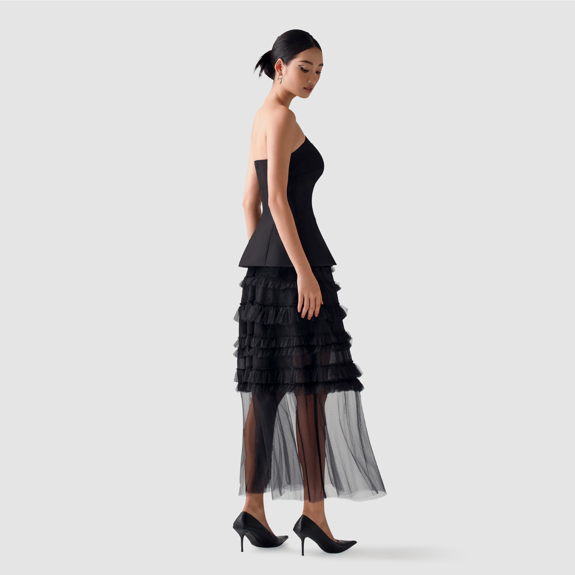 Mua tại Tiktok- Mô tả INFINITY / ALVA Áo cup ngực cách điệu dáng peplum, ôm eo, hông xoè, nẹp giả lệch bên trái
