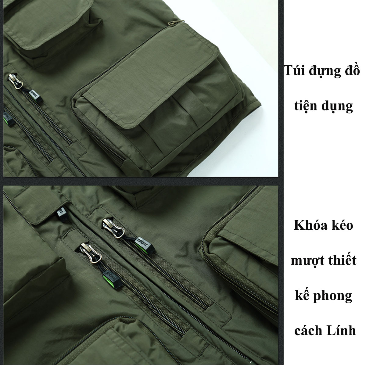 - Áo gile nam kiểu lính thiết kế túi hộp, đẹp mắt, phong cách cực chất, thiết kế tỉ mỉ trong từng chi tiết đạt tiêu chuẩn Châu Âu, thể hiện được đẳng cấp của sản phẩm.