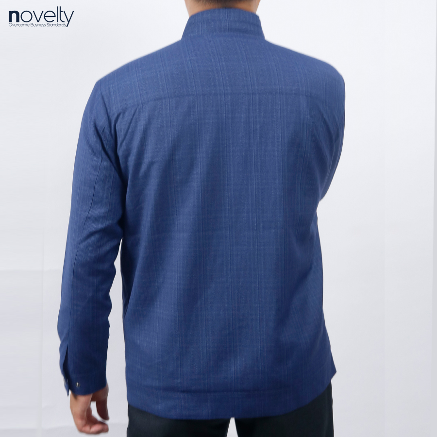 Áo Jacket nam 2 lớp cổ trụ Novelty Casual caro lớn xanh dương NJKMCLMT3B2305252