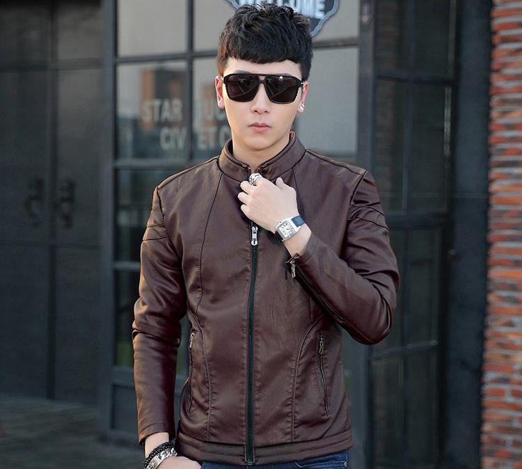 Áo khoác da nam lót lông cổ bo thời trang AD30 nâu PigoFashion