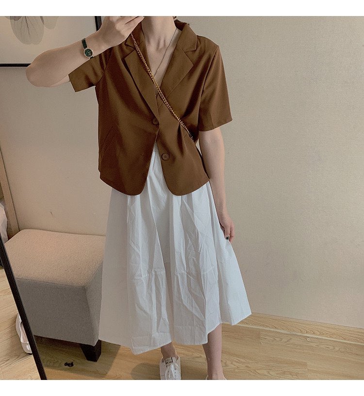 - Chất liệu: 65% Polyester - 32% Rayon - 3% Spandex - Màu: Trắng - Size: XS S M L + Số đo cho size S: Áo Blazer: 65cm + Số đo cho size M: