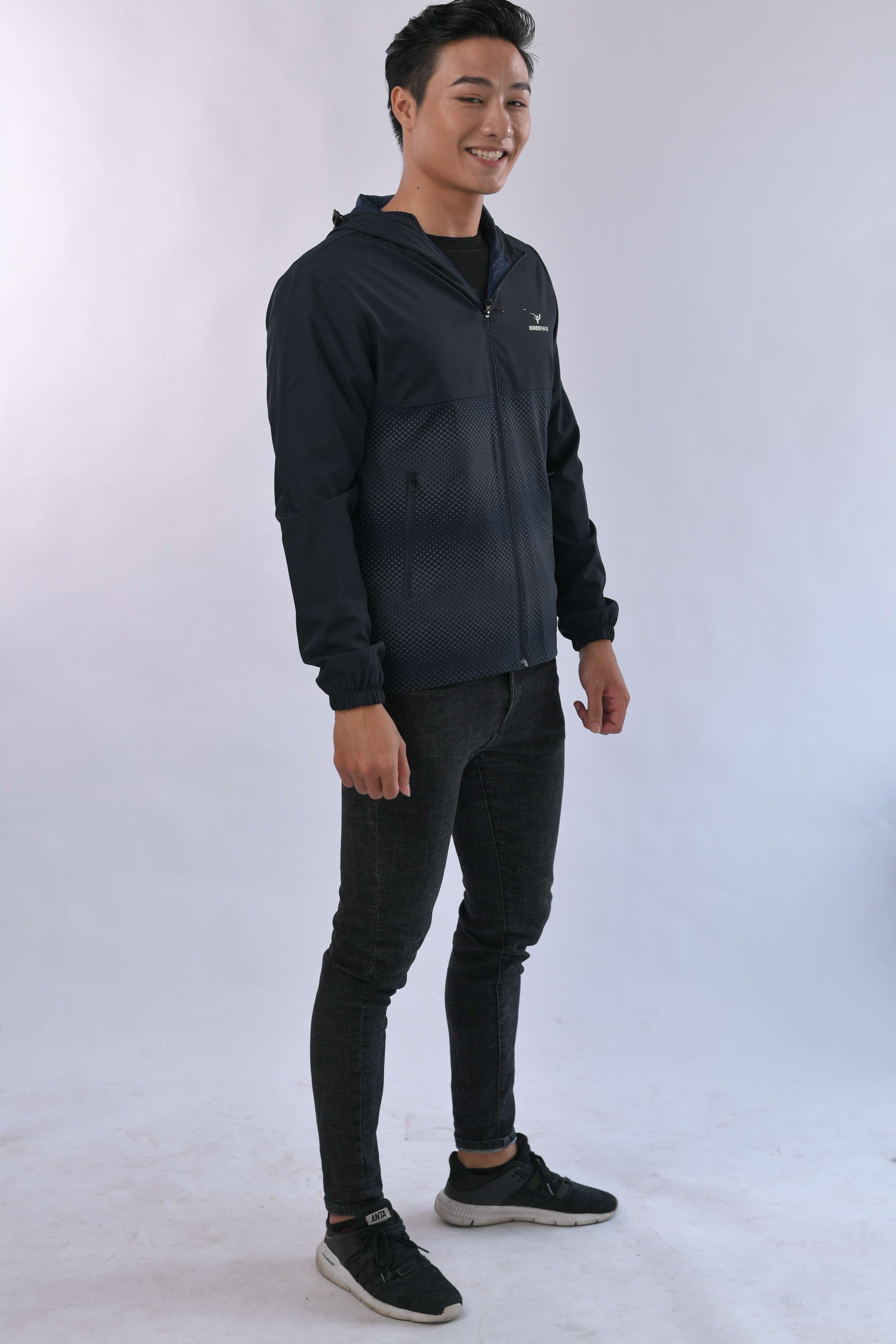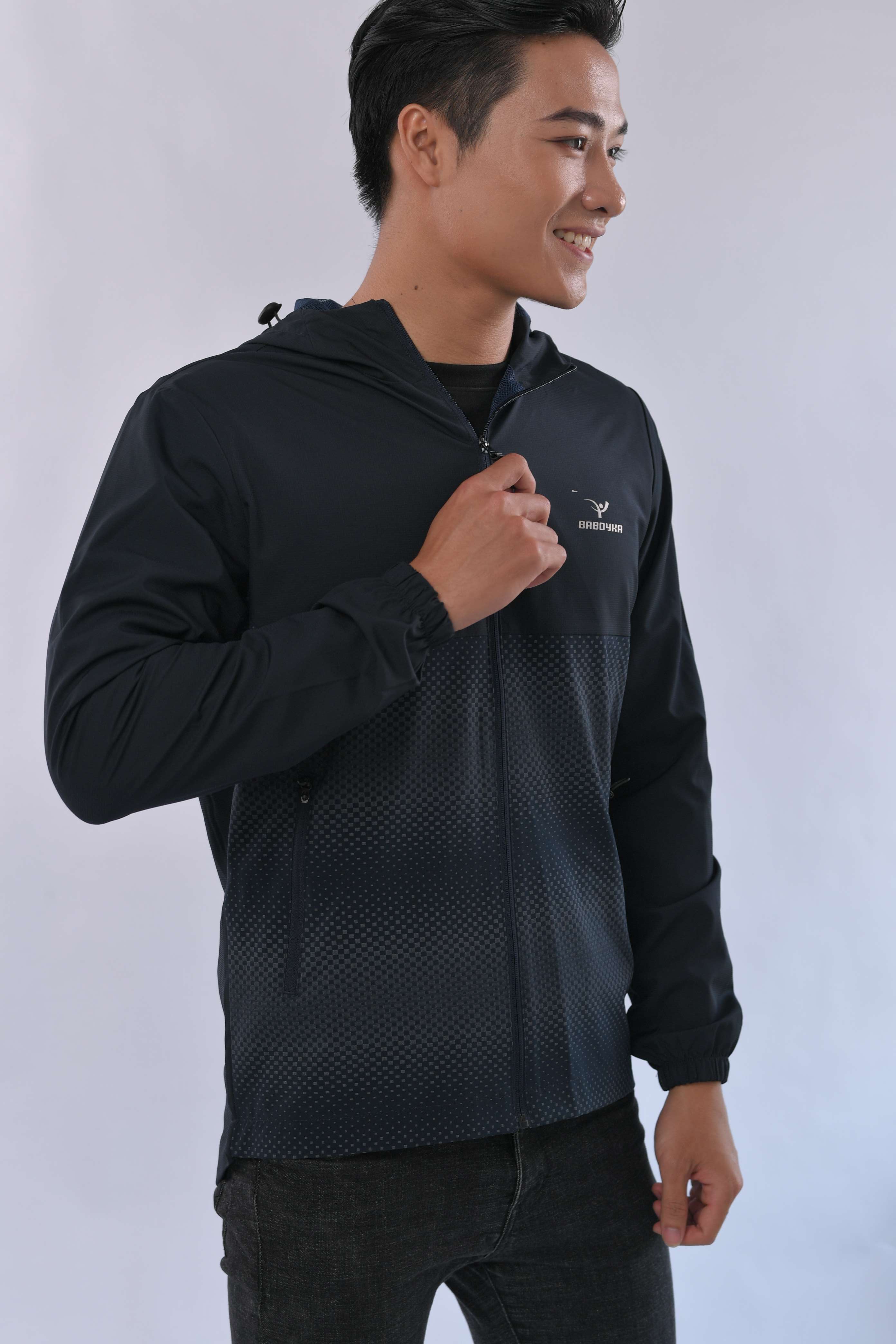 Áo khoác gió hai lớp baboyka phối vải in phản quang thân dưới mang lại cho người mặc nét khỏe mạnh năng động. Mỗi một màu cơ bản của sản phẩm đều có 3 lựa chọn họa tiết phản quang phối thân dưới gồm: Họa tiết hình vuông, họa tiết sước, và họa tiết đường tròn đồng tâm. Đây đều là cá họa tiết đại diện cho các môn thể thao thành tích cao. Khi bạn lựa trọn áo khoác giáo baboyka này có nghĩa bạn là người yêu thích thể thao.
